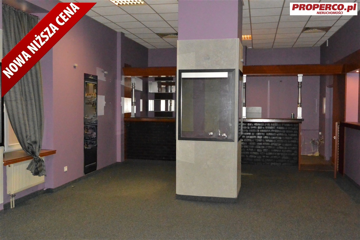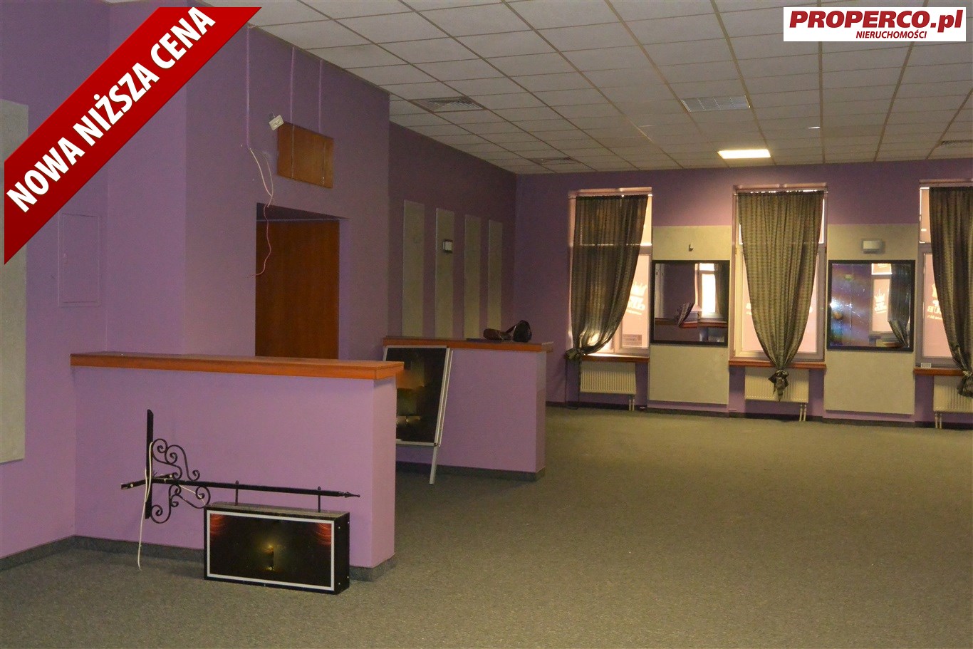 For rent, a commercial and service premises with an area of 260 sqm, located on the ground floor of a historic building over 100 years old. The property is situated in the center of Kielce, at Sienkiewicza street. There are numerous commercial and service points, offices, and cultural institutions (including the Cathedral, Bishops' Palace, and theater) in the vicinity.
