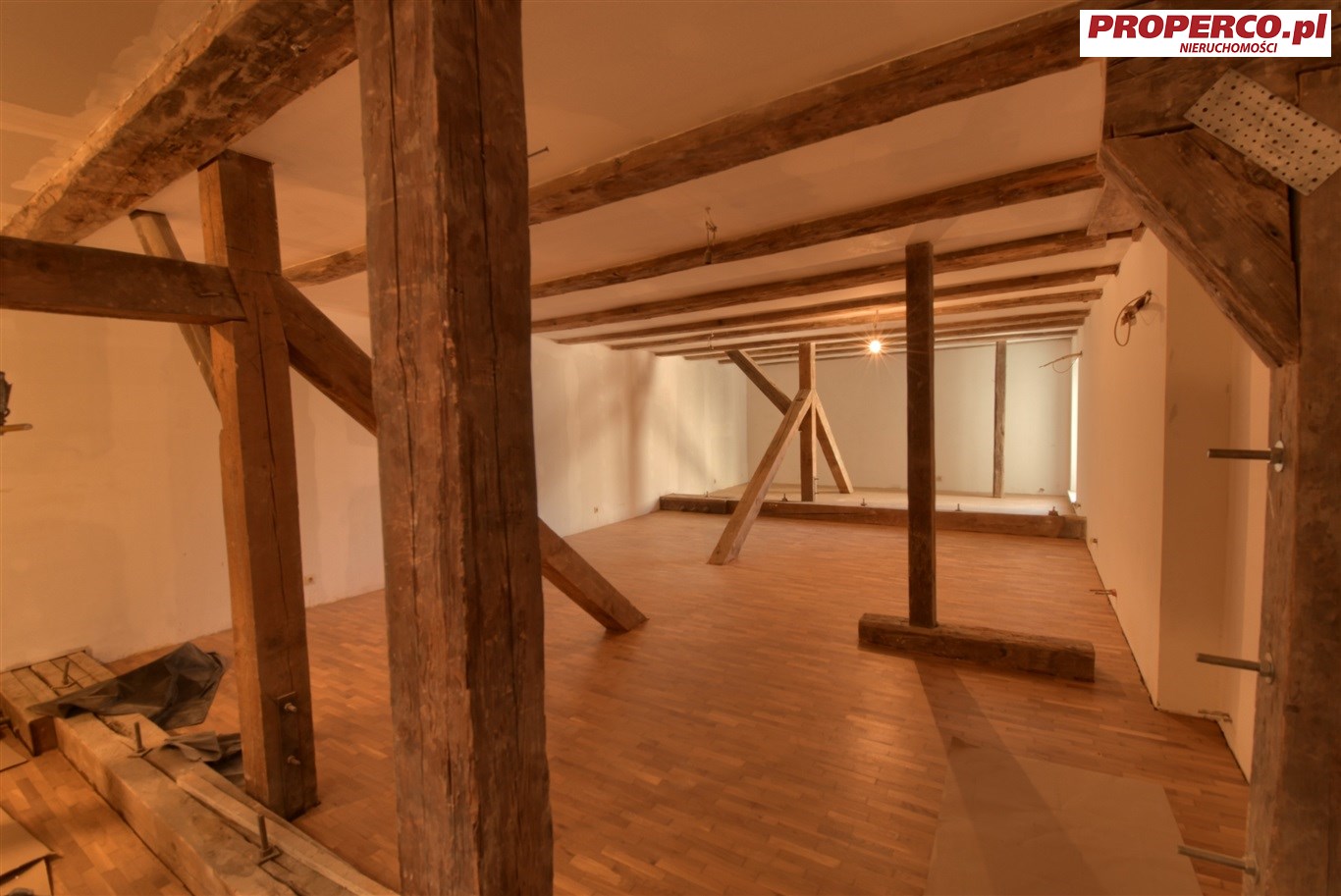 400 m2 usytuowany na drugim i trzecim piętrze w 3-piętrowej kamienicy z XVIII w. zlokalizowanej w ścisłym centrum miasta, w pobliżu Rynku. W 2019 r. w lokalu przeprowadzono generalny remont. Lokal dwupoziomowy, składający się z dwóch pomieszczeń typu open space, łazienki oraz pomieszczenia socjalnego. Wysokość lokalu- 3 m. Ogrzewanie za pomocą pieca gazowego dwufunkcyjnego. Ekspozycja okien - na 4 strony.