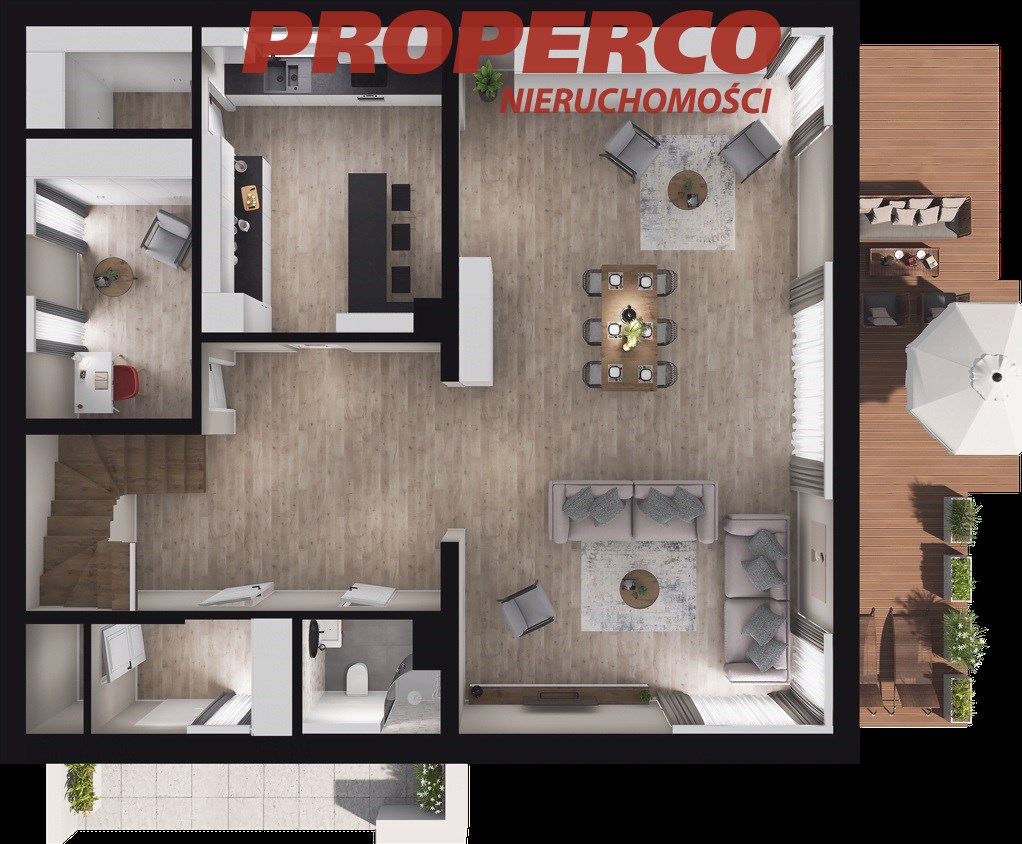 Dom w stanie deweloperskim. Prezentowana wizualizacja jest propozycją aranżacji wnętrza i nie stanowi projektu.