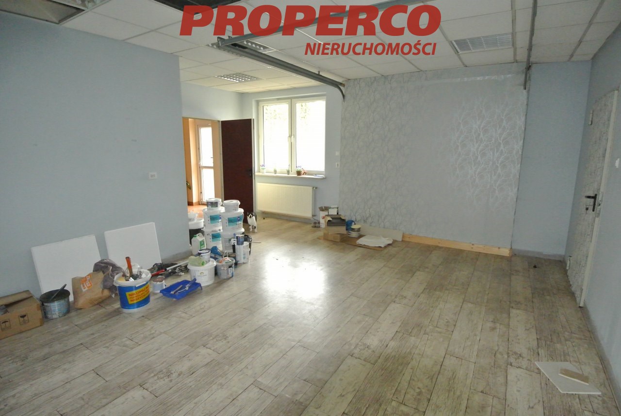 For rent, a premises with an area of approximately 130m2 located in Kostomłoty Pierwsze, right next to the S74 route. The premises include: an office space of approximately 30m2, warehouse spaces of approximately 10m2 and 90m2, and sanitary facilities with a toilet. Room heights are 2.60m and 2.90m. Parking is available in front of the building.