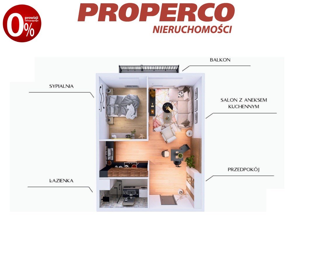 For sale: A 2-room apartment with an area of 42.83 m² located on the fourth floor of a newly developed residential project in Jędrzejów.