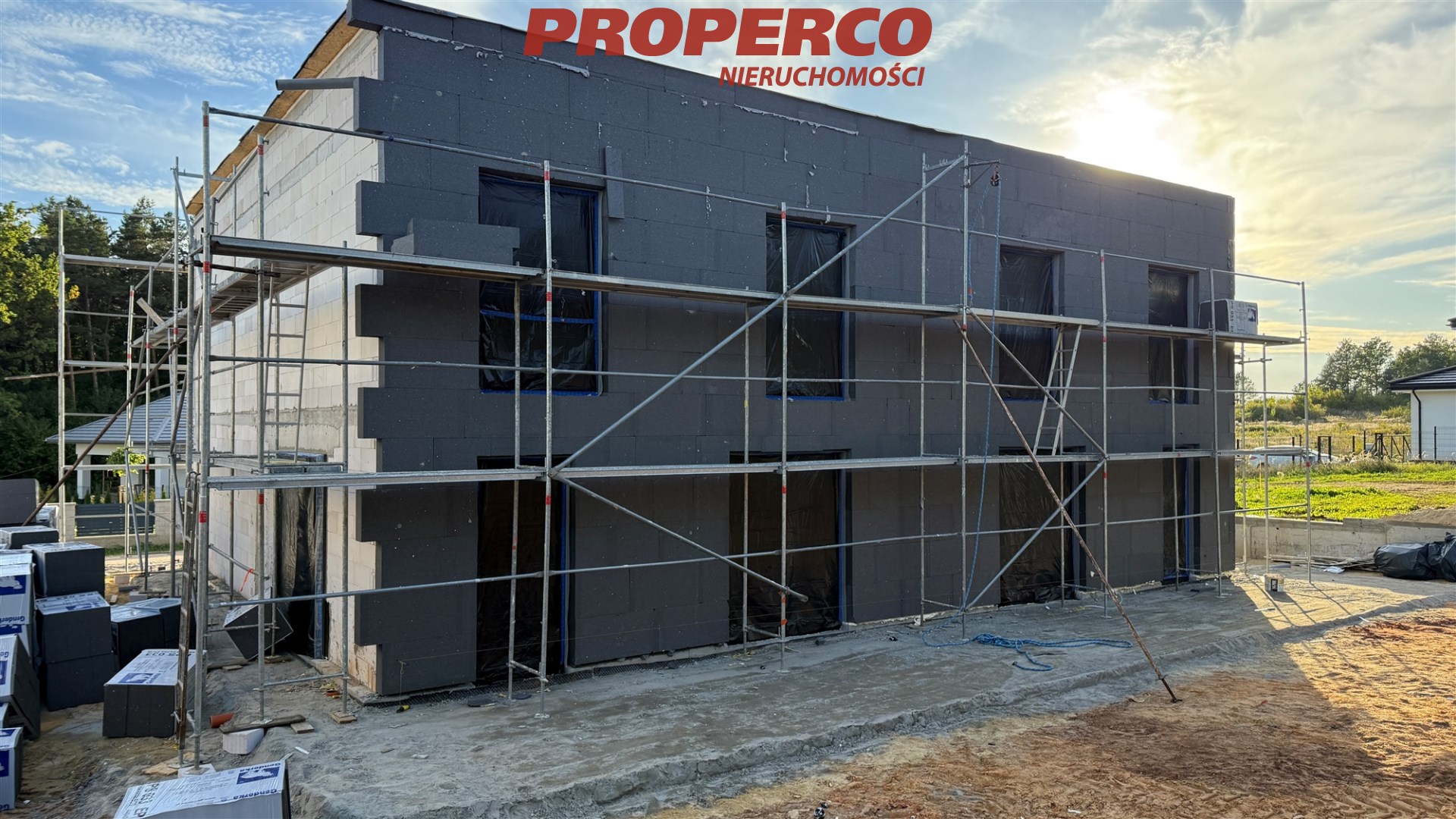 For sale: a semi-detached house in developer standard with a usable area of 142.61 m², located in a newly developing residential estate in Bilcza, Morawica municipality.