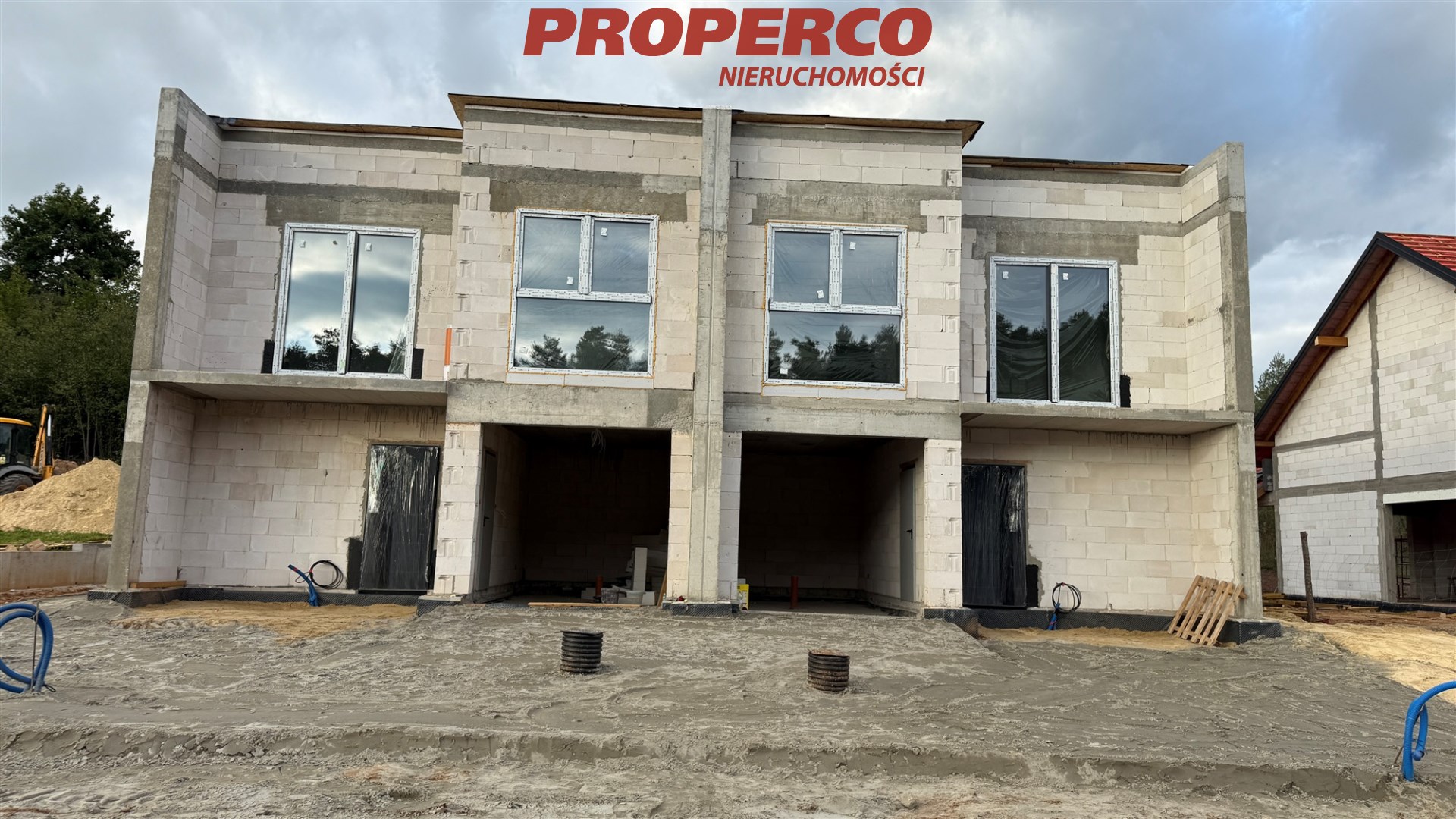 For sale: a semi-detached house in developer standard with a usable area of 142.61 m², located in a newly developing residential estate in Bilcza, Morawica municipality.