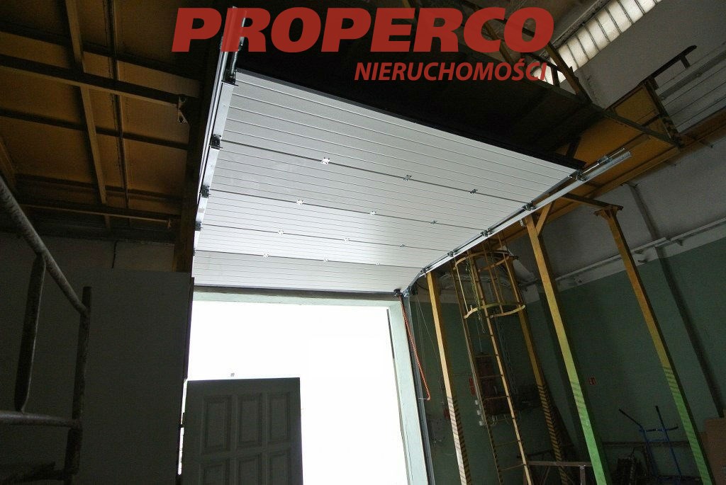 The hall has no ramp — ground-level access. Natural lighting (windows and roof skylights) and artificial lighting (lamps). Concrete floor. Connected to water and sewage system. The hall is unheated, with the option to install heaters. In front of the hall, there is a paved maneuvering area for TIR trucks (asphalt and concrete pavers).