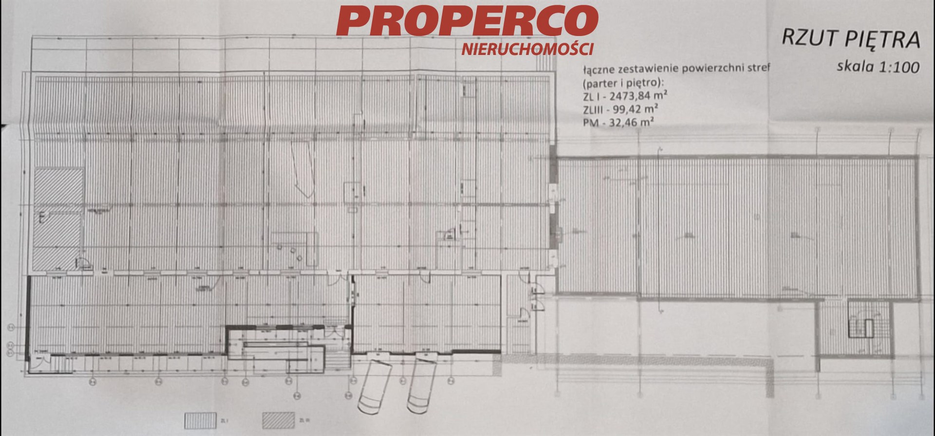 For rent: commercial, service, production, and warehouse building with a total area of 2605.72 m2 and usable area of 2473.84 m2, located in Starachowice, Wierzbnik district, on a plot of 2401 m2.