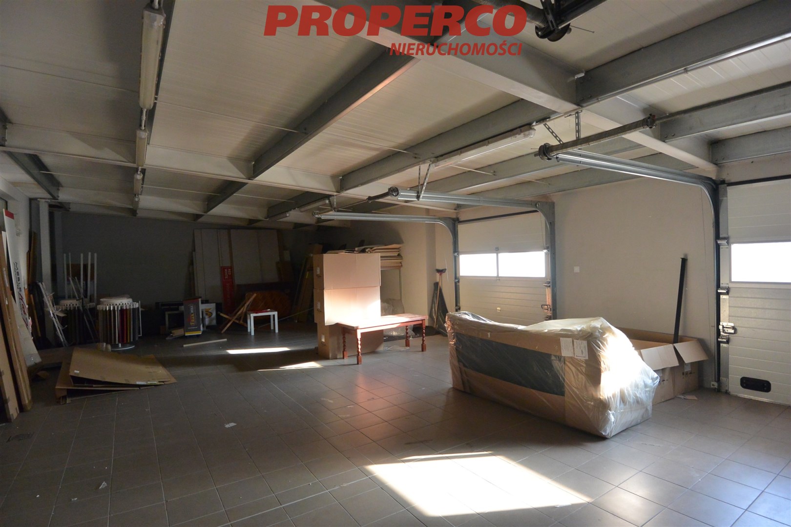 The hall has 3 automatic sectional gates (two accessible from the ramp, one from ground level) and two entrances.