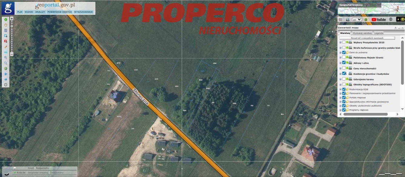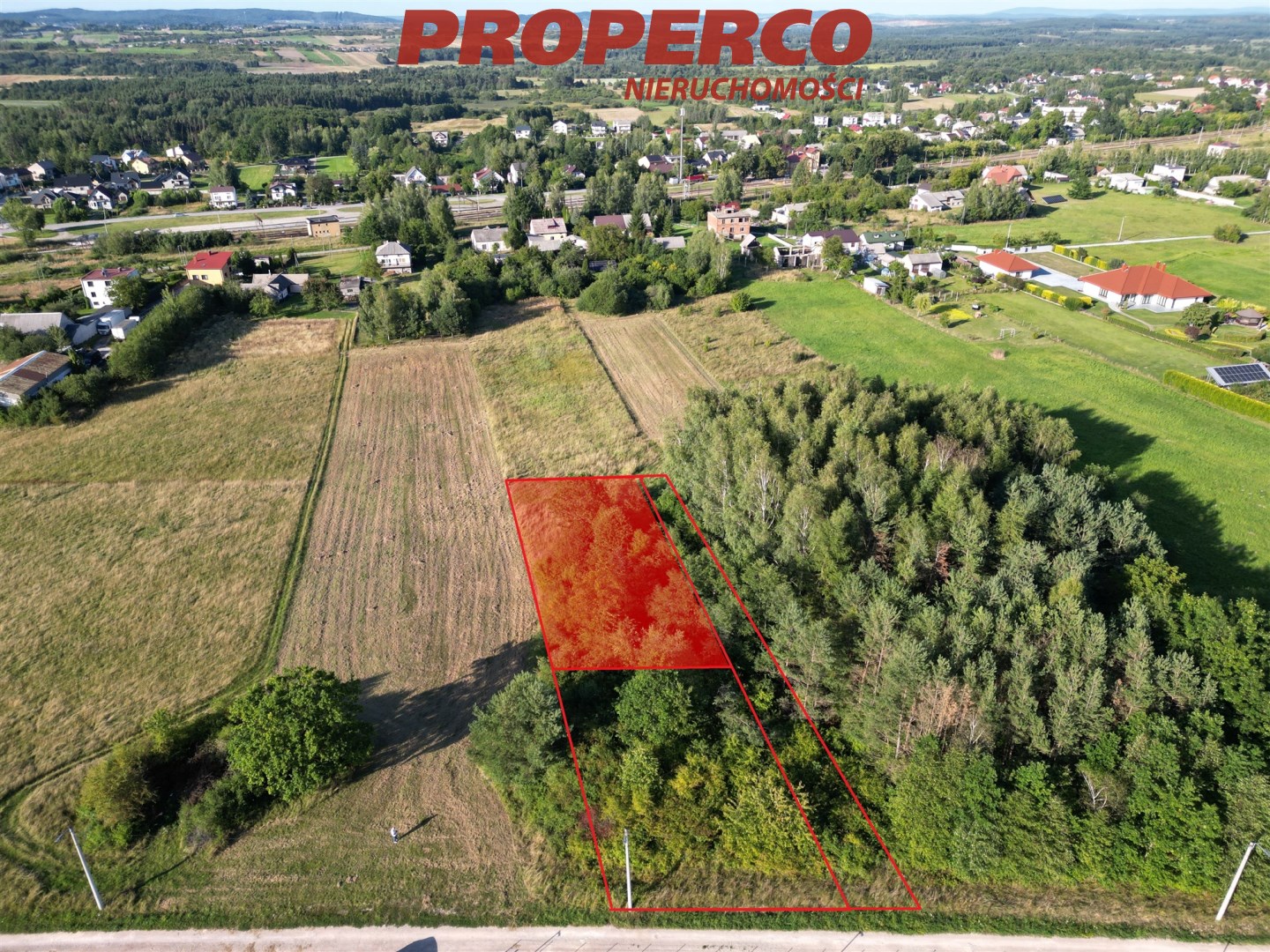 Access to the property via a municipal paved road, then approx. 50 m by an internal paved road about 5 m wide. The plot is slightly sloping, undeveloped, covered with bushes, rectangular in shape, offering a view of the Chęciny panorama.