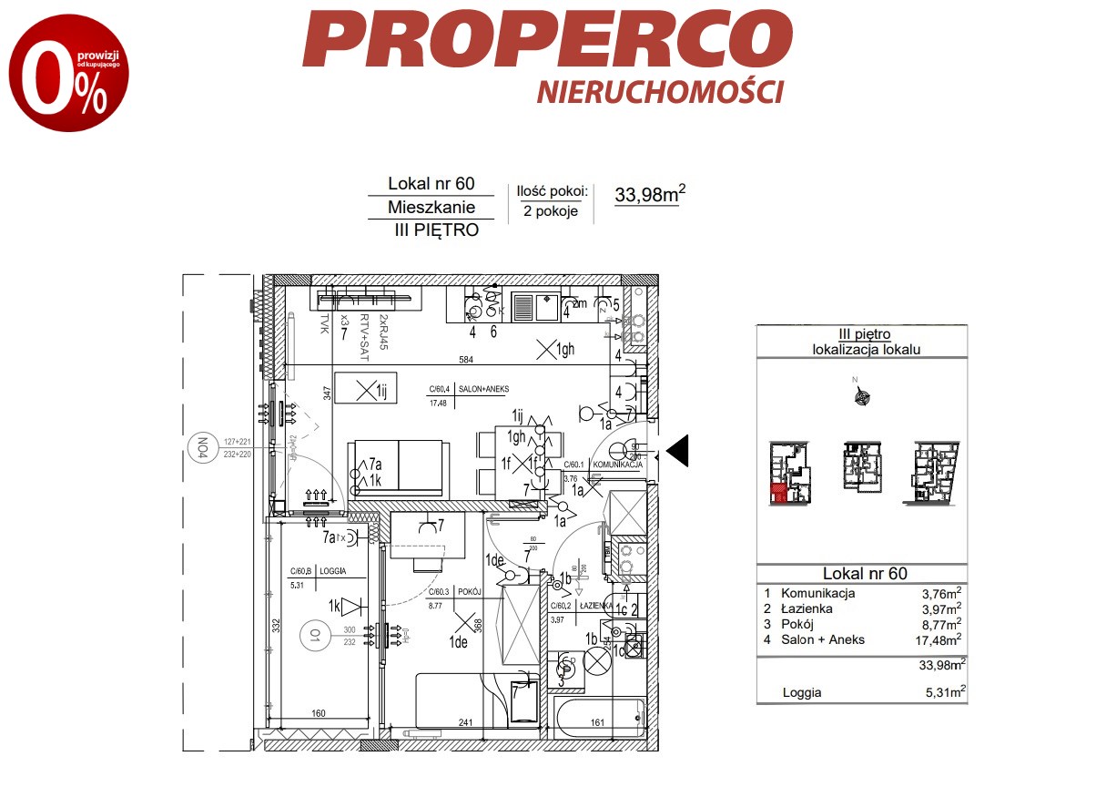 Do lokalu przynależy loggia o pow. 5,31 m2.