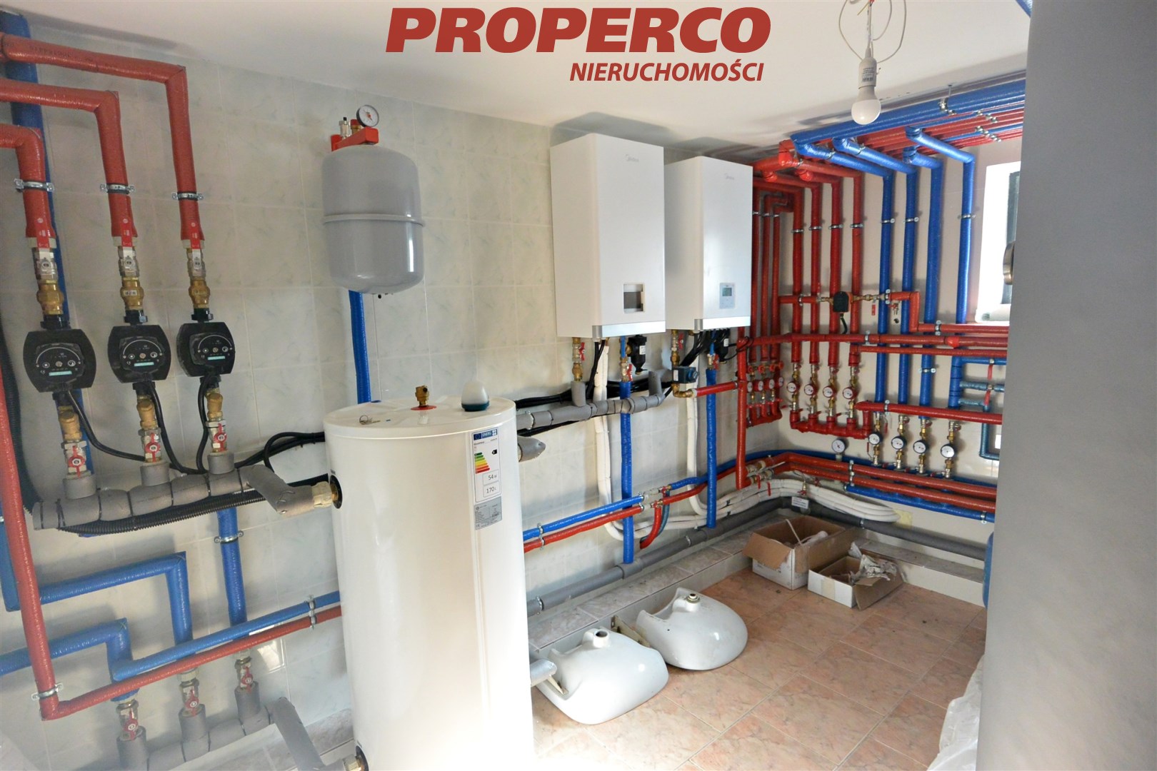 Zainstalowano nowoczesne rozwiązania zwiększające komfort i efektywność energetyczną: ogrzewanie pompą ciepła oraz panele fotowoltaiczne o mocy 15 kW, z planowanym montażem kolejnego zestawu o takiej samej mocy. Okna trzyszybowe wyposażono w zewnętrzne parapety marmurowe. Nieruchomość jest zabezpieczona systemem alarmowym z podłączeniem do ochrony.