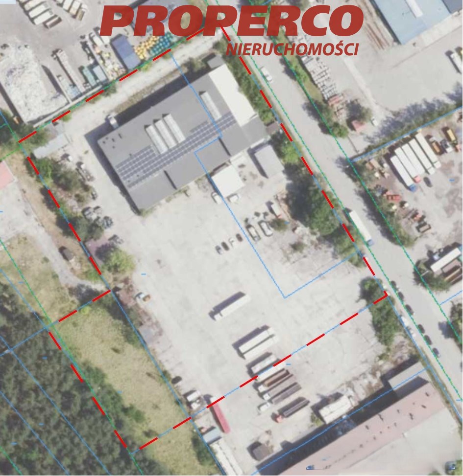 Powierzchnia działki hali: 15 335 m2. Przybliżone wymiary działki: 137 x 127 x 64 x 29 x 74 x 98 [m]. Szerokość frontu ok. 137 m.