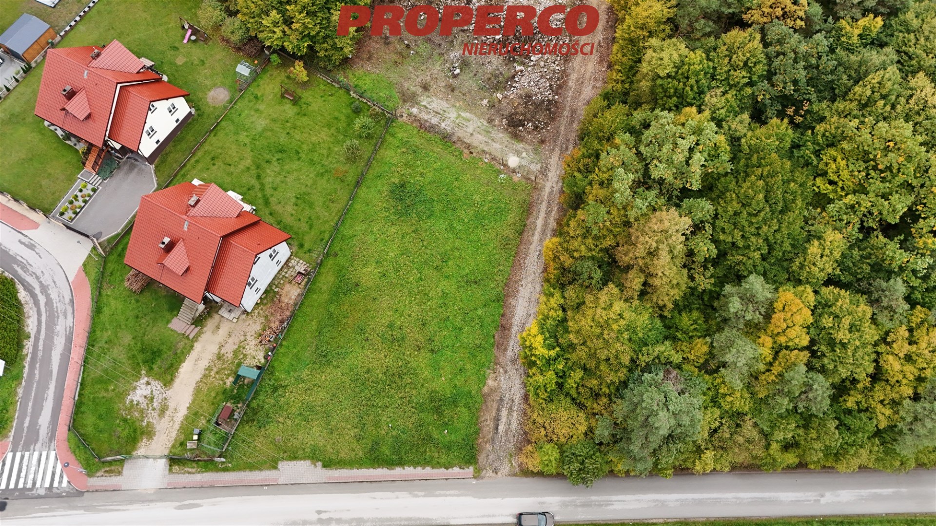 Działka położona jest w pierwszej linii względem drogi, z bezpośrednim dojazdem drogą gminną, asfaltową. W sąsiedztwie działki niezabudowane oraz nowe domy. Działka lekko nachylona, w kształcie trapezu, niezagospodarowana, nieogrodzona położona w sąsiedztwie terenów zielonych.