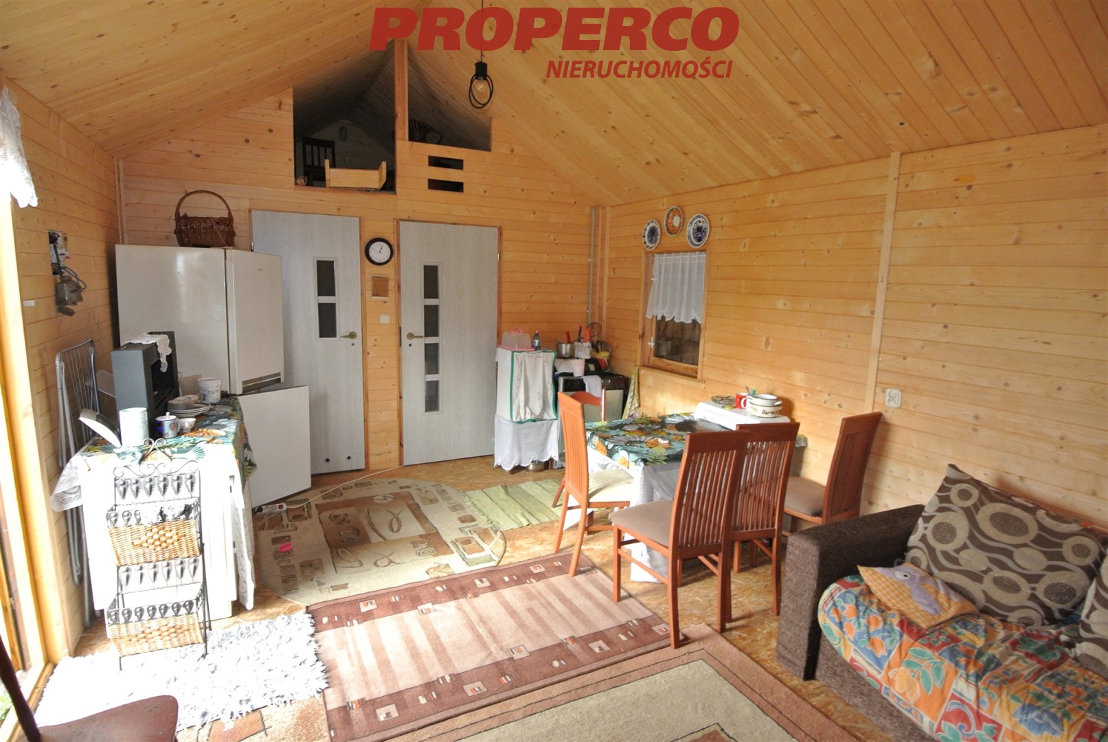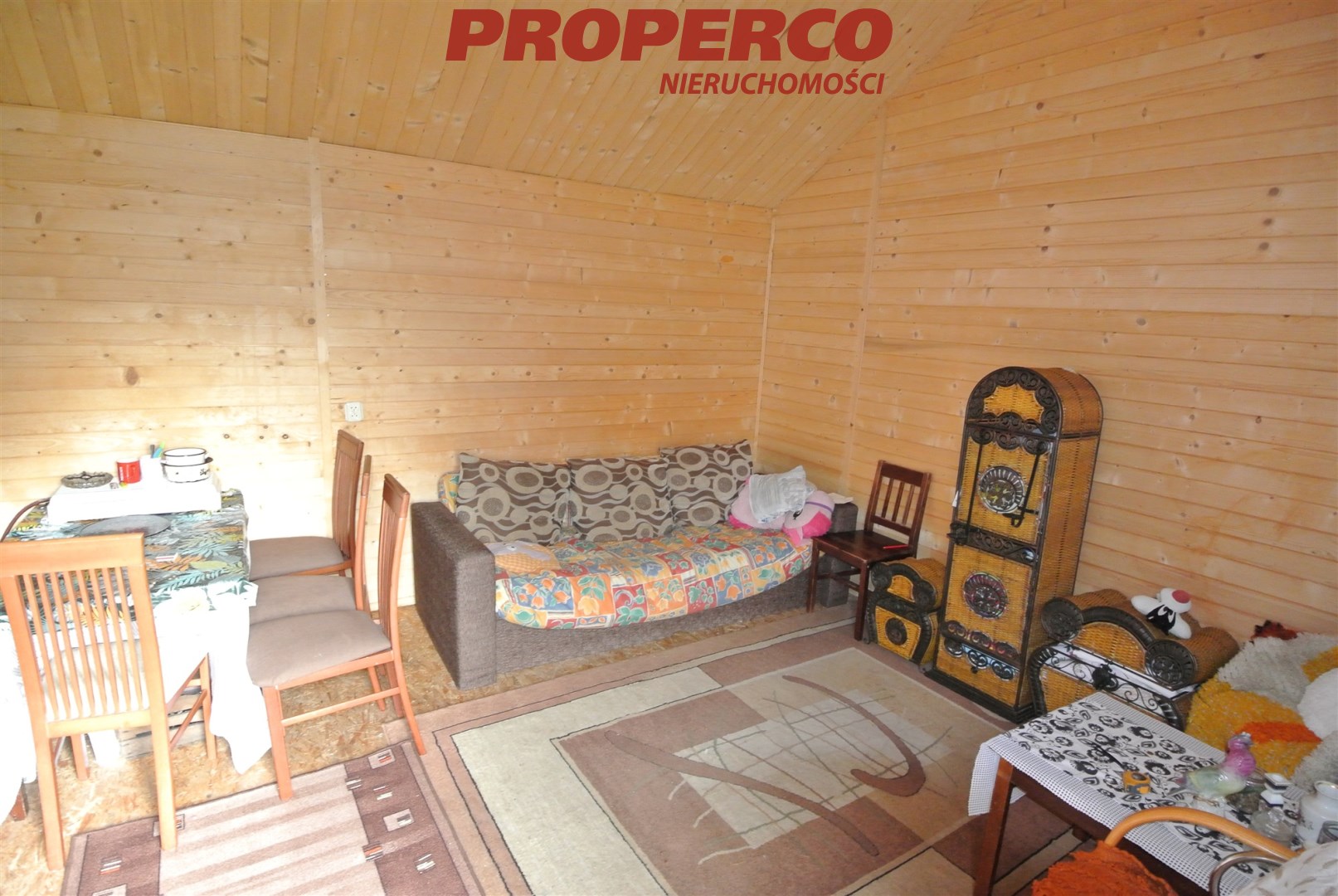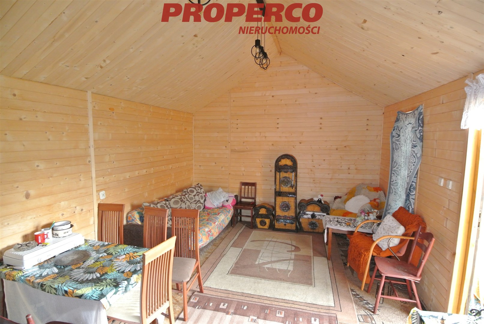 For sale: a summer house with an area of approx. 45 m², located in Kołaczkowice, Busko-Zdrój commune. The building consists of a living room with a kitchenette, a bathroom with a toilet, and a bedroom.