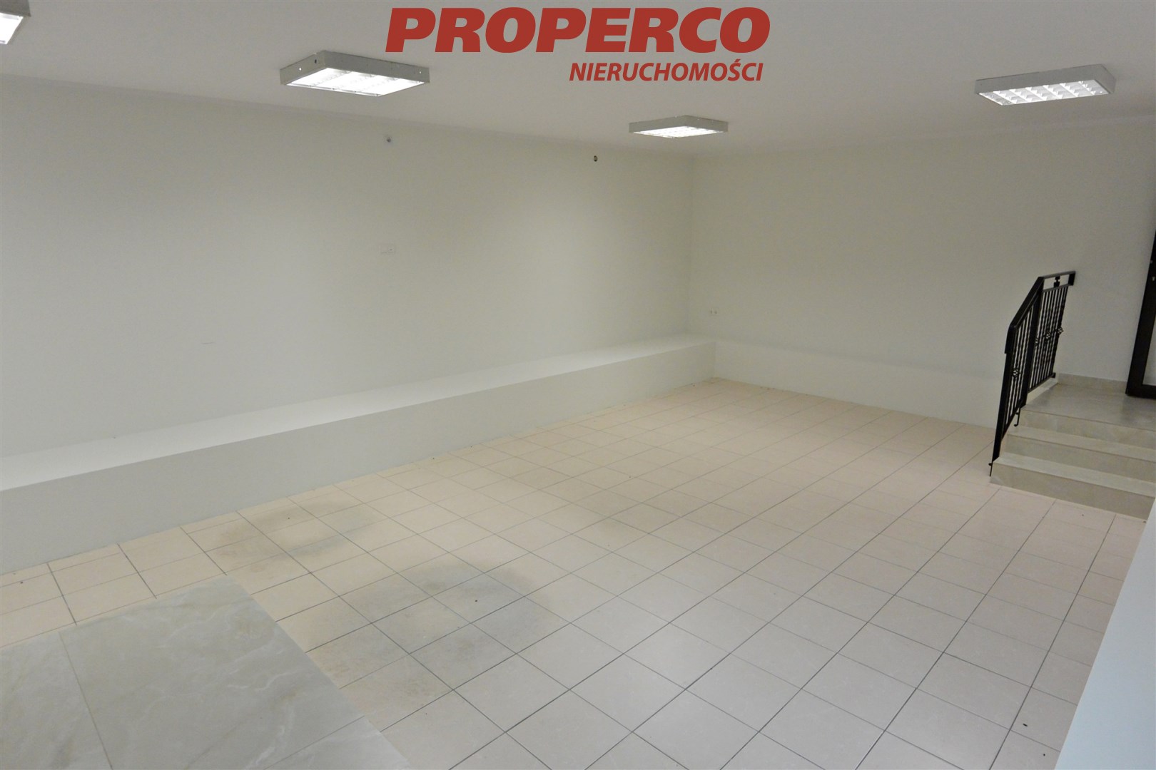 For rent: a premises with an area of approx. 54.2 m², located in a commercial and service building in the center of Daleszyce. The unit is situated on level -1. Entrance through a shared staircase. The building has two entrances: from the front and from the yard.