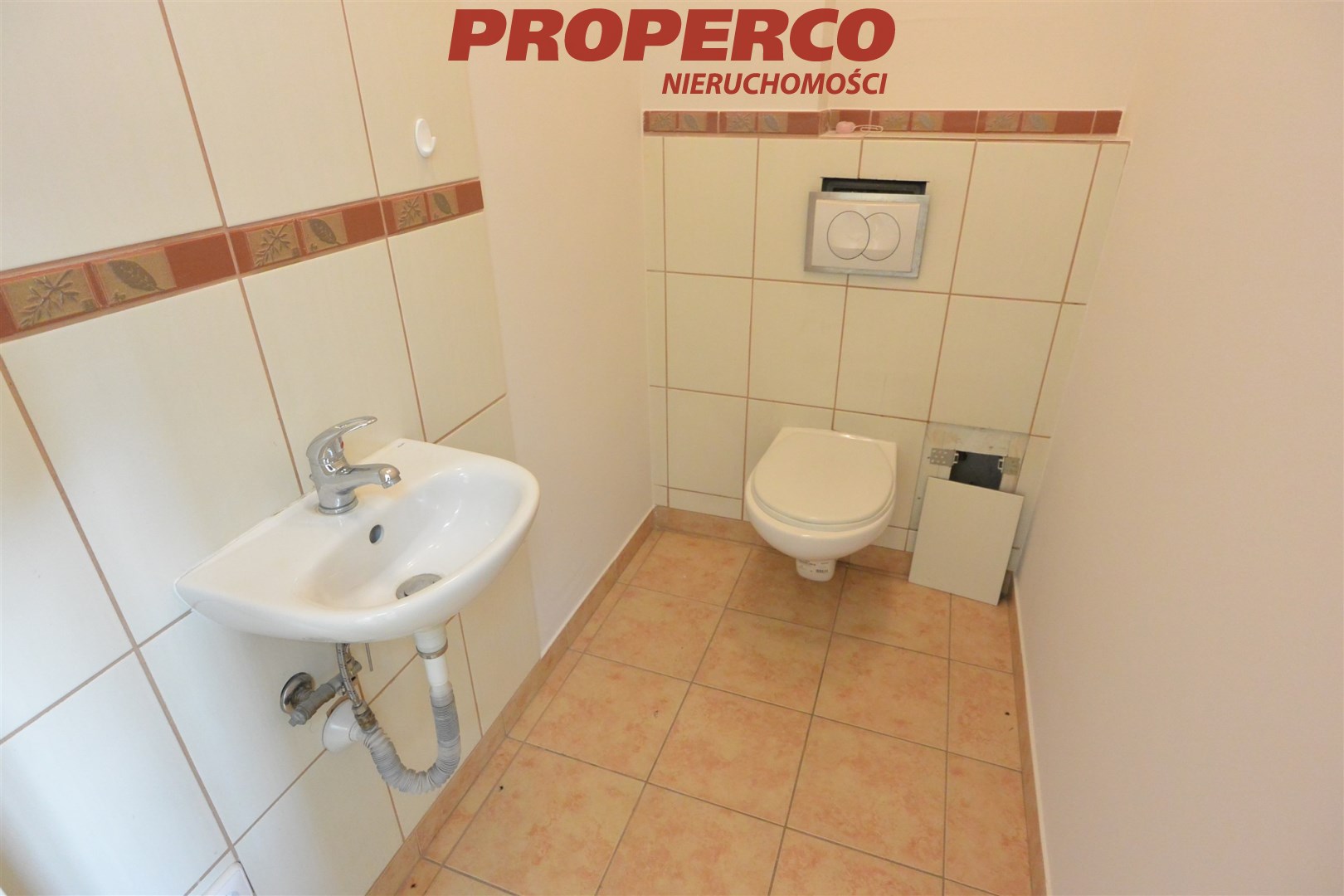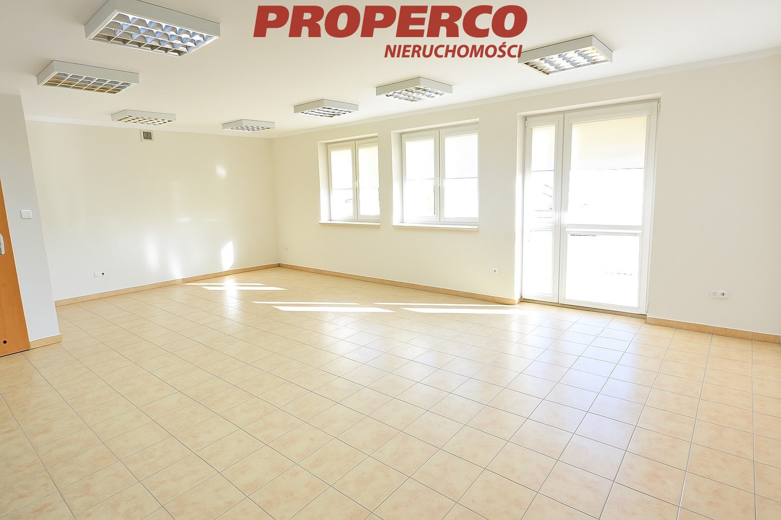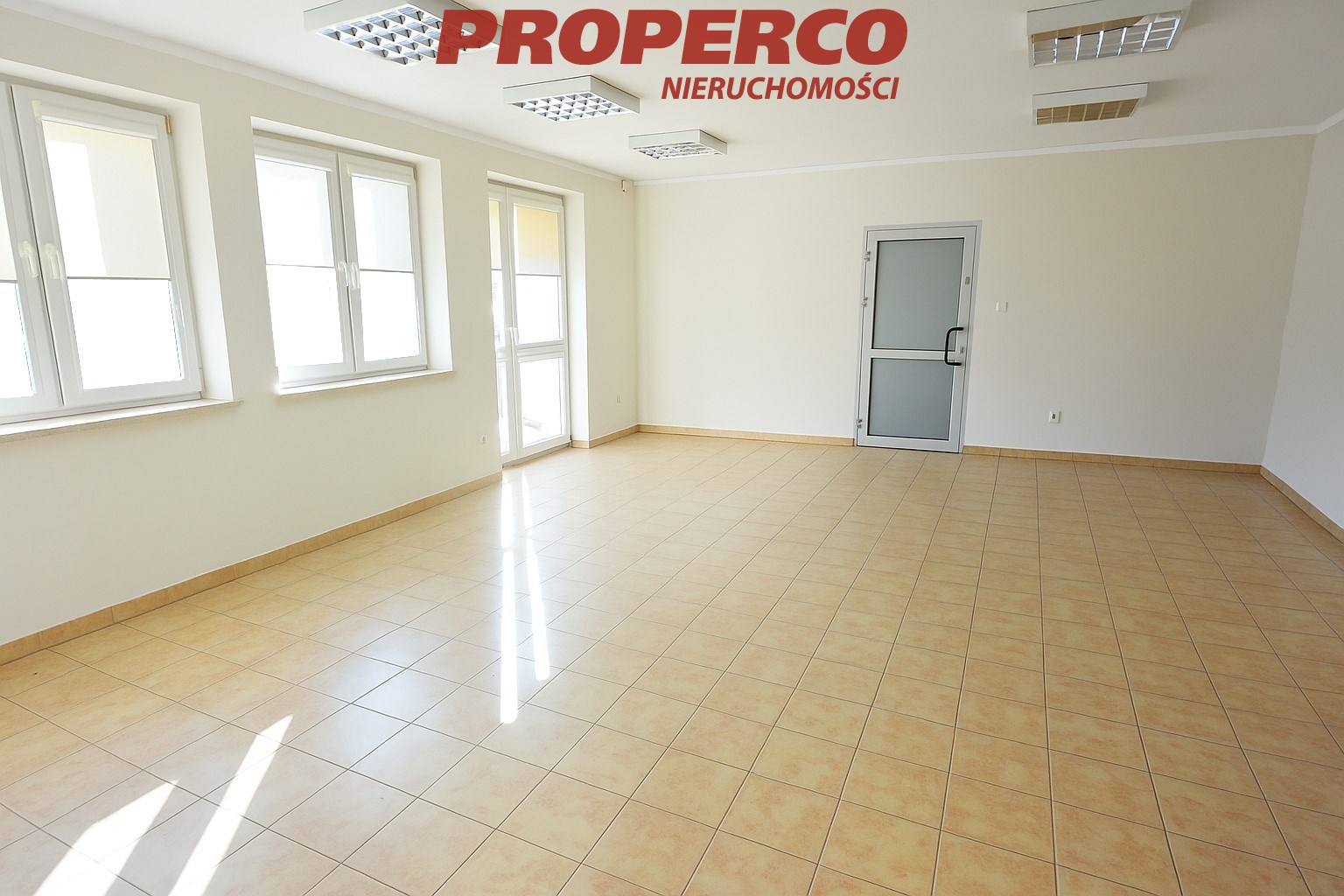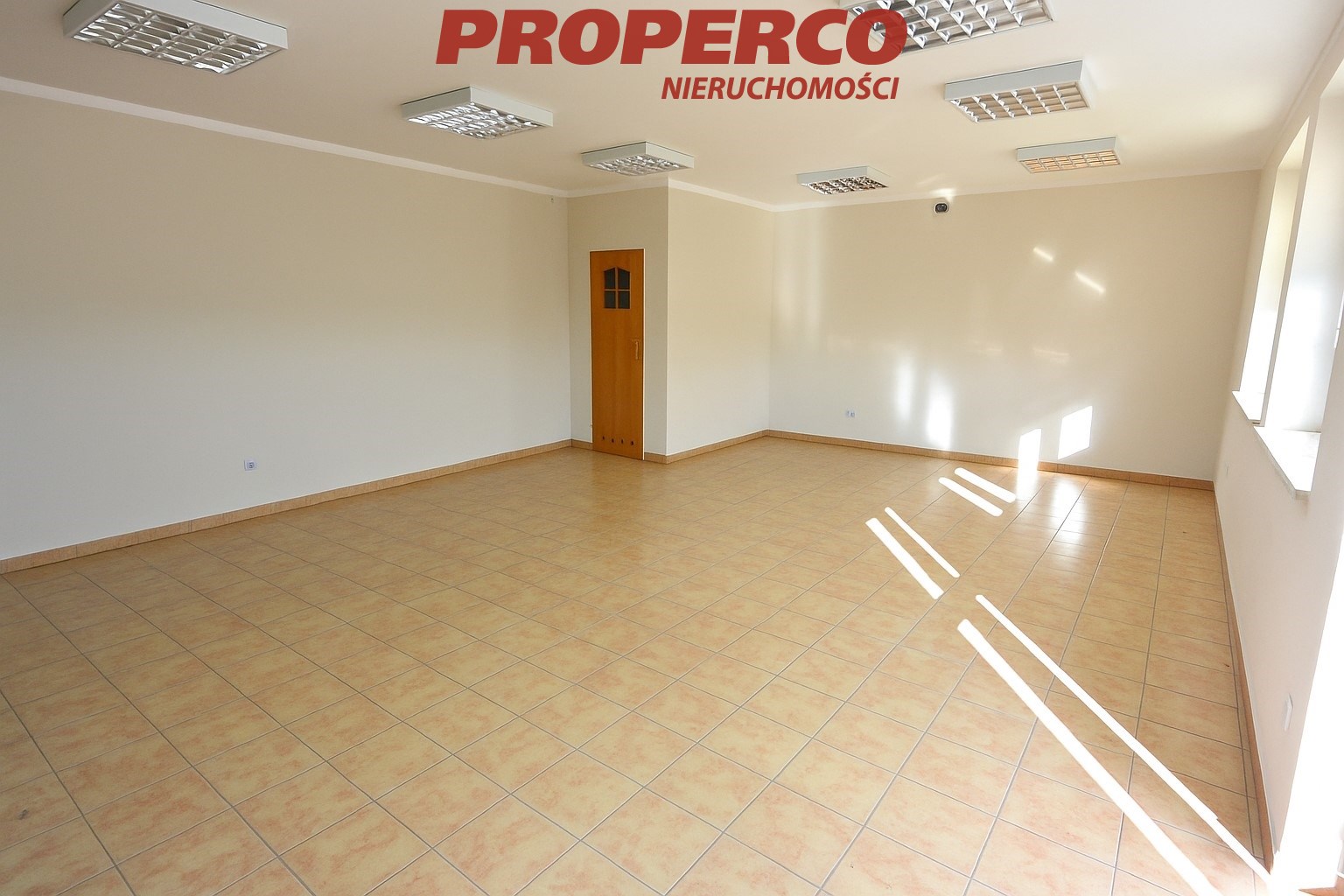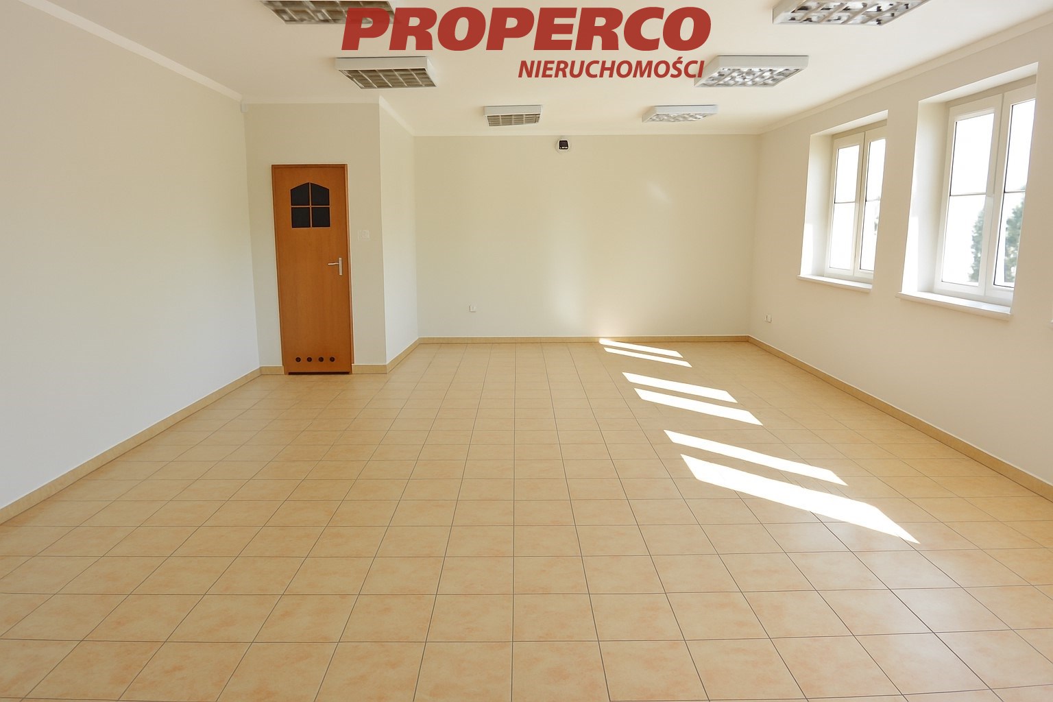 For rent: a premises with an area of 43.5 m², located on the first floor of a commercial and service building in the center of Daleszyce. Entrance to the unit through a shared staircase. The building has two entrances: from the front and from the yard.