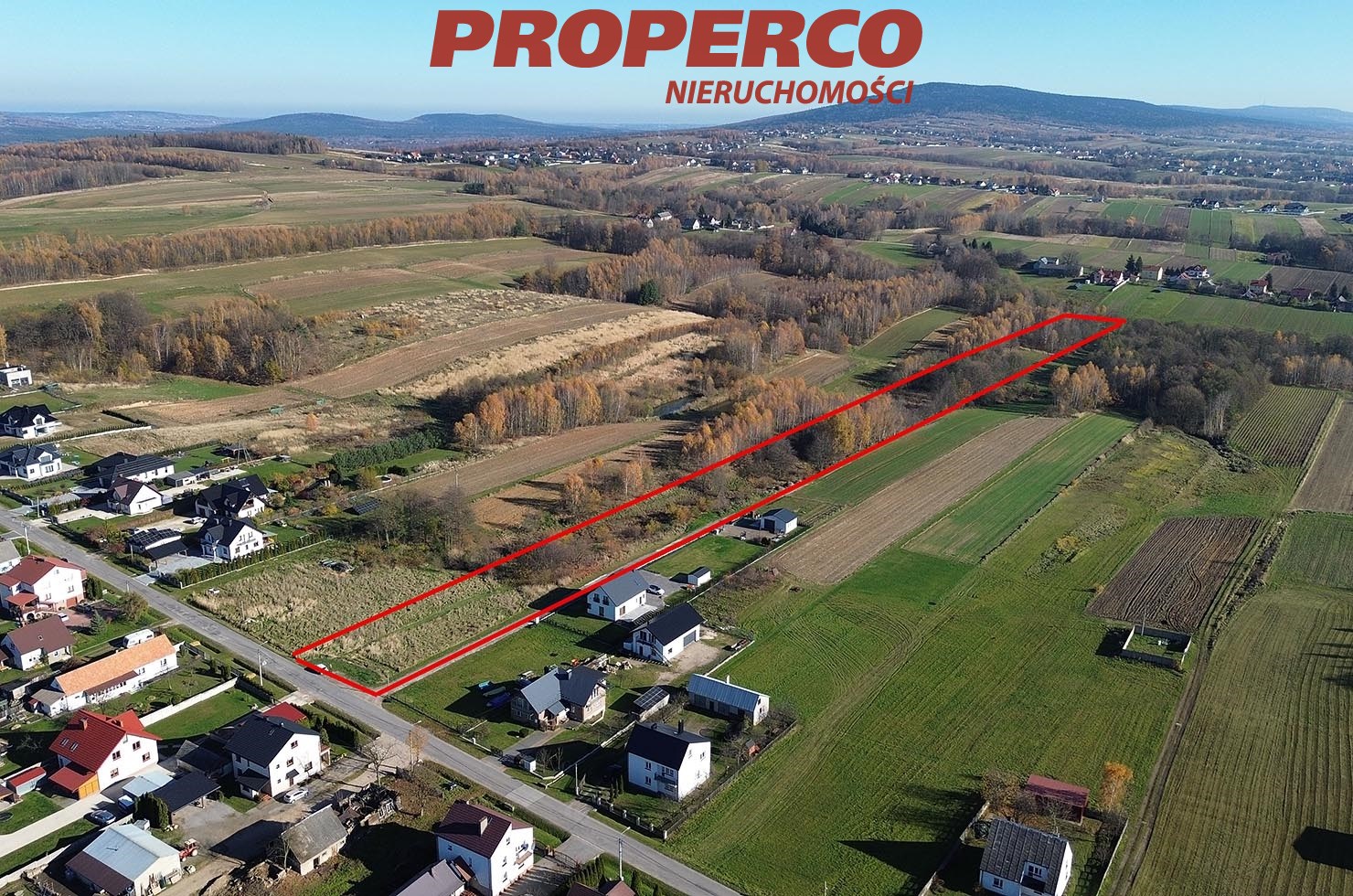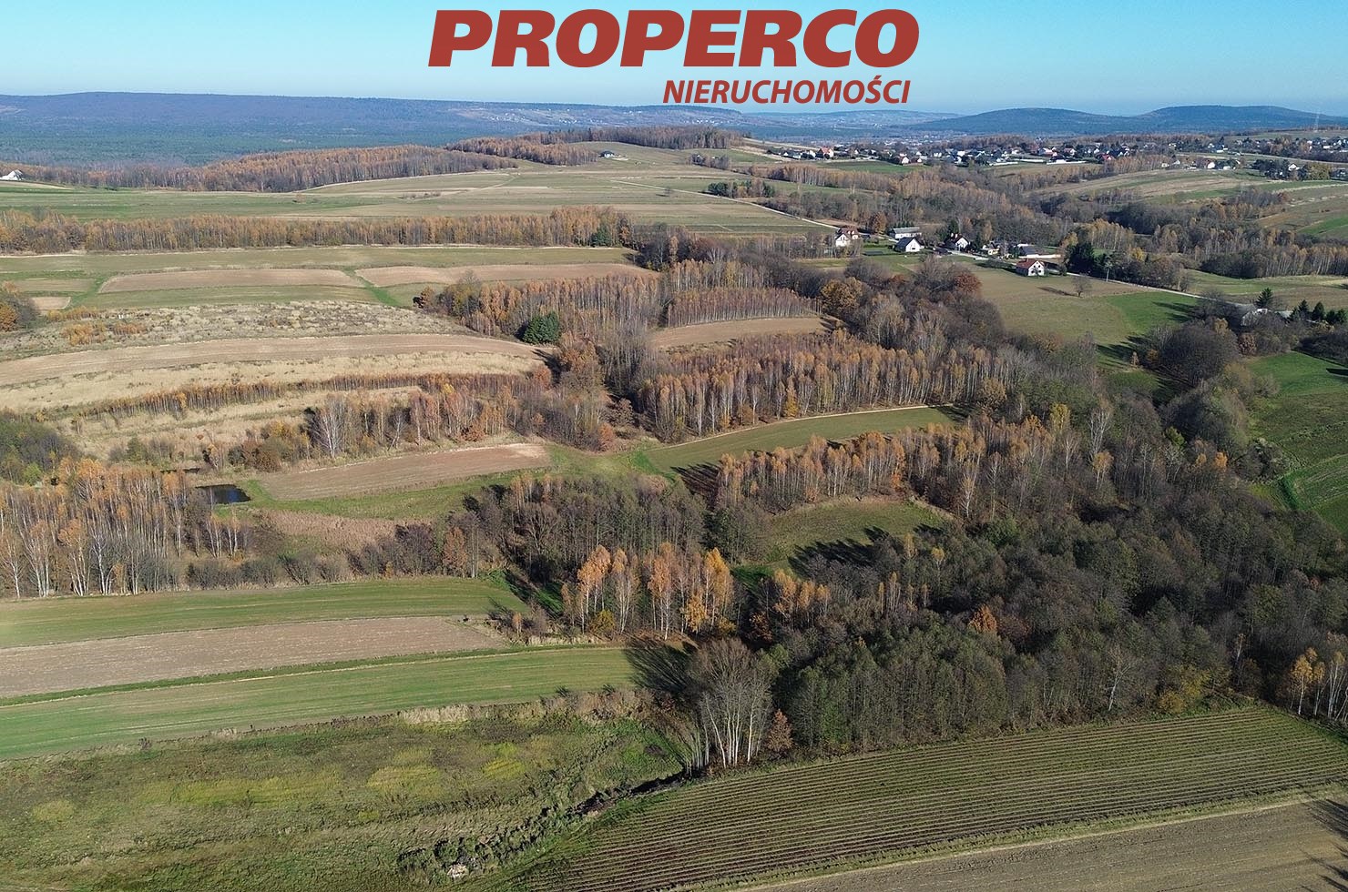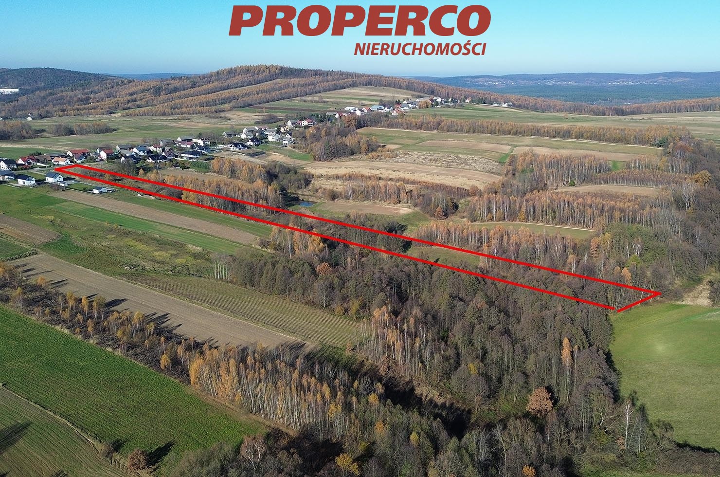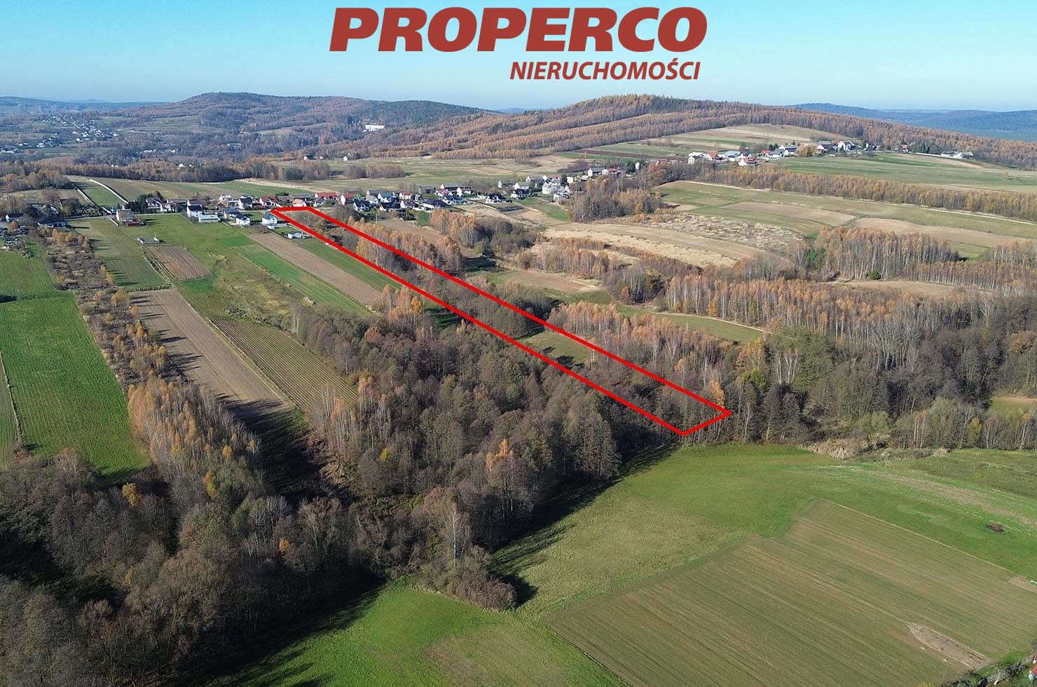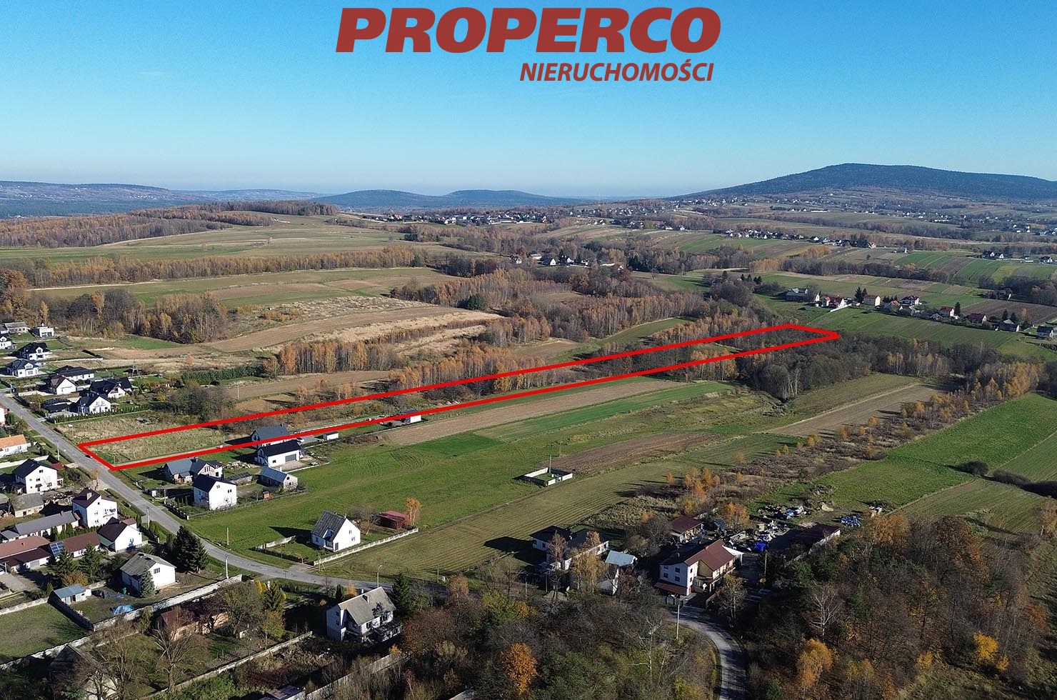 The plot has access from an asphalt road at the front, and a second entrance from the side of the property via a private gravel road. Single-family housing in the vicinity. Convenient access – 20 minutes from the centre of Kielce. The plot is unfenced, undeveloped, undulating, overgrown with tall grass, bushes and trees.