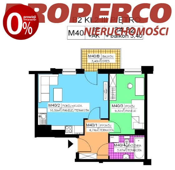 Do mieszkania przynależy balkon o pow. 3,4m2.