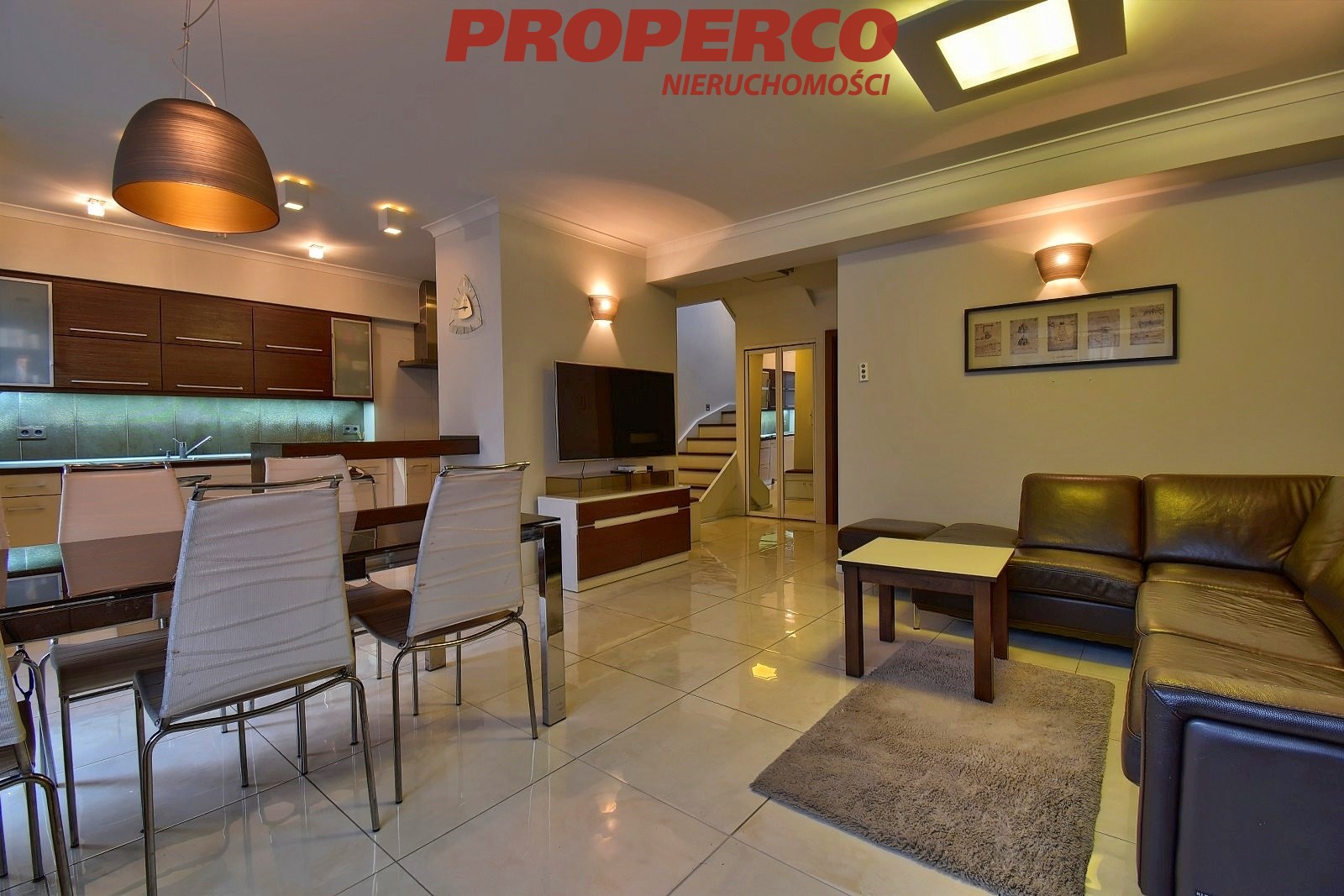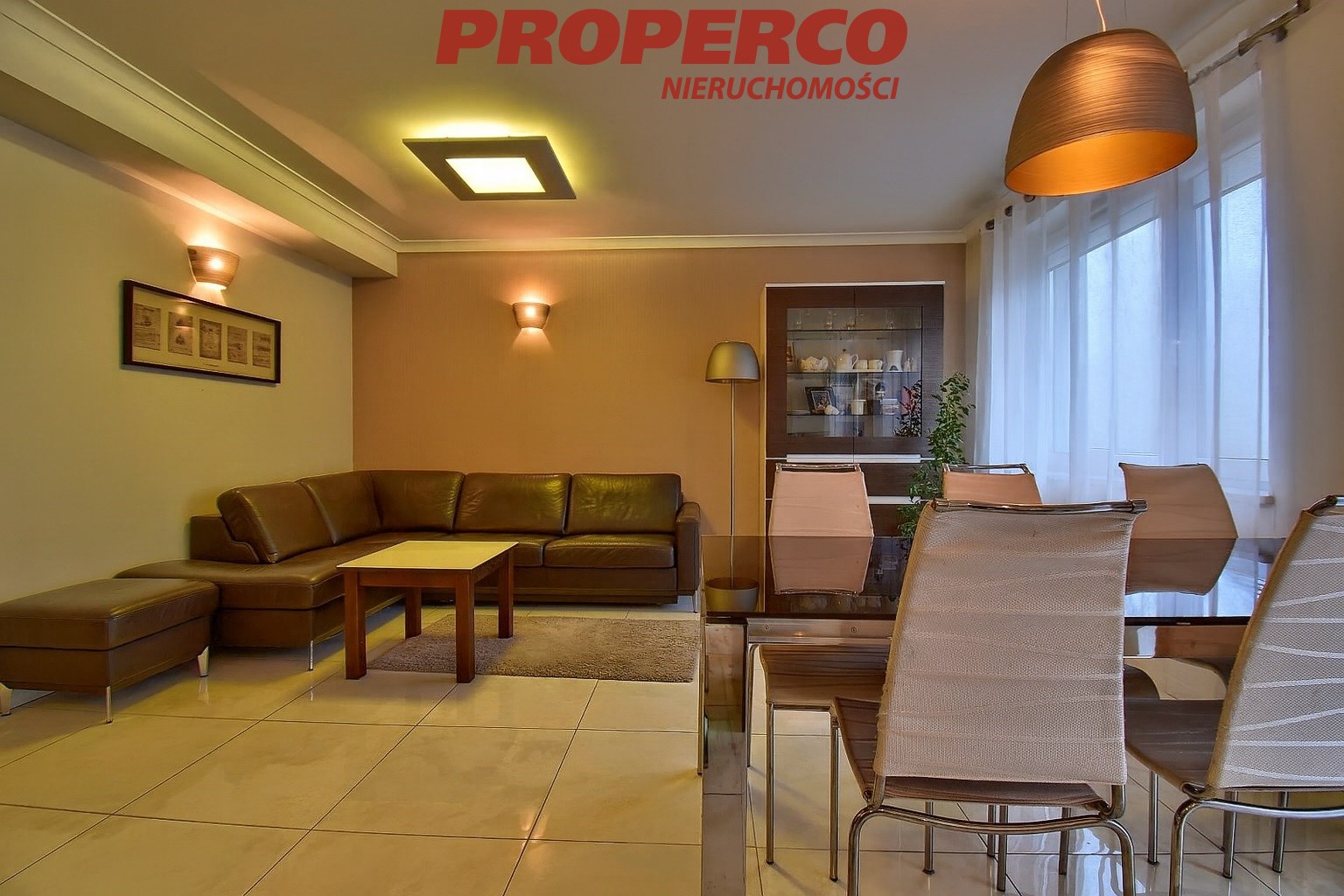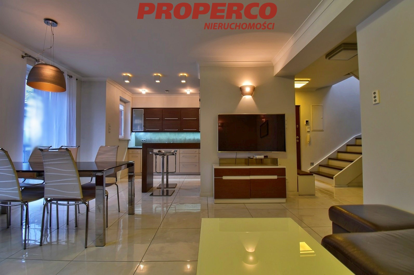 For sale a fully furnished, two-level apartment with an area of 94.5 m2 located on the 1st and 2nd floors of a 2-storey building from 2012, situated in a quiet, gated estate of terraced apartments at Chodkiewicza Street in Kielce.