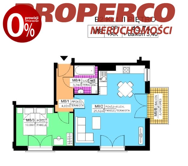 Do mieszkania przynależy balkon o pow. 3,4m2.