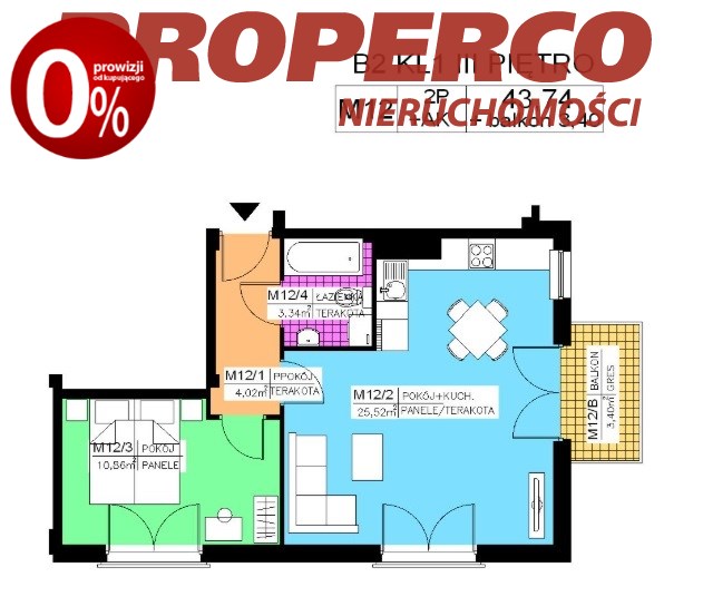 Do mieszkania przynależy balkon o pow. 3,4m2.