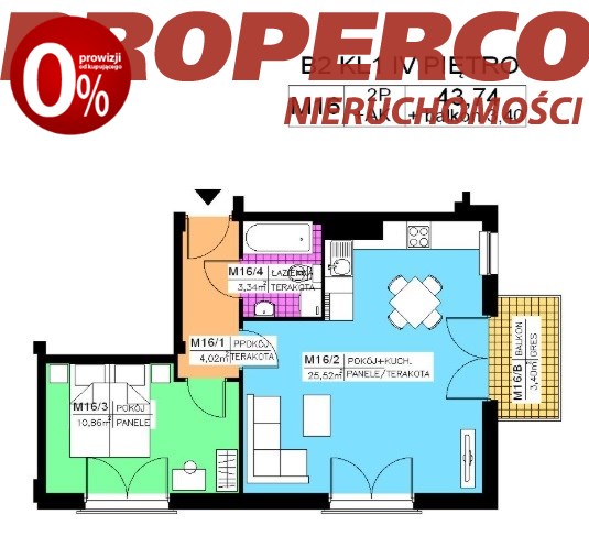 Na sprzedaż 2 - pokojowe mieszkanie o pow. 43,74 m2 dostępne na IV piętrze budynku, zlokalizowanego w nowoczesnej inwestycji, położonej w bezpośrednim sąsiedztwie