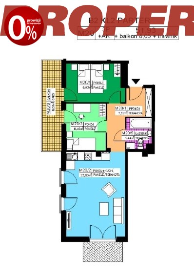 Do mieszkania przynależy balkon o pow. 8,05 m2 oraz ogródek.