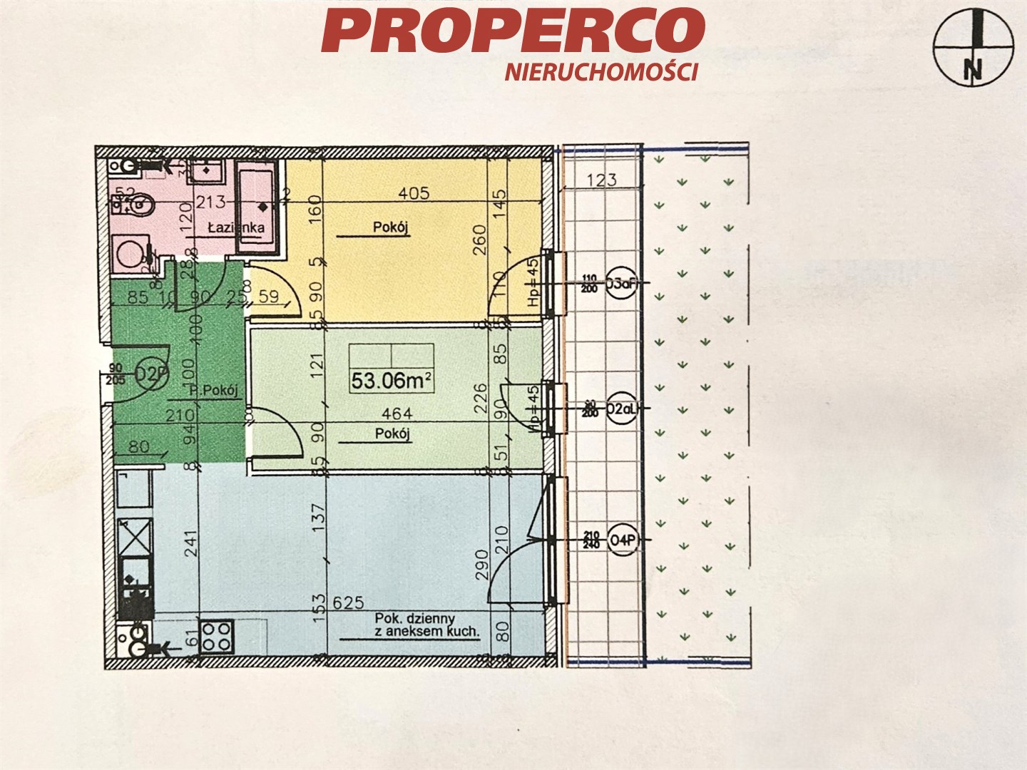 Na powierzchnię składają się: salon połączony z aneksem kuchennym, wyjście do ogródka, 2 sypialnie, łazienka z WC. Ekspozycja okien: wschodnia.
