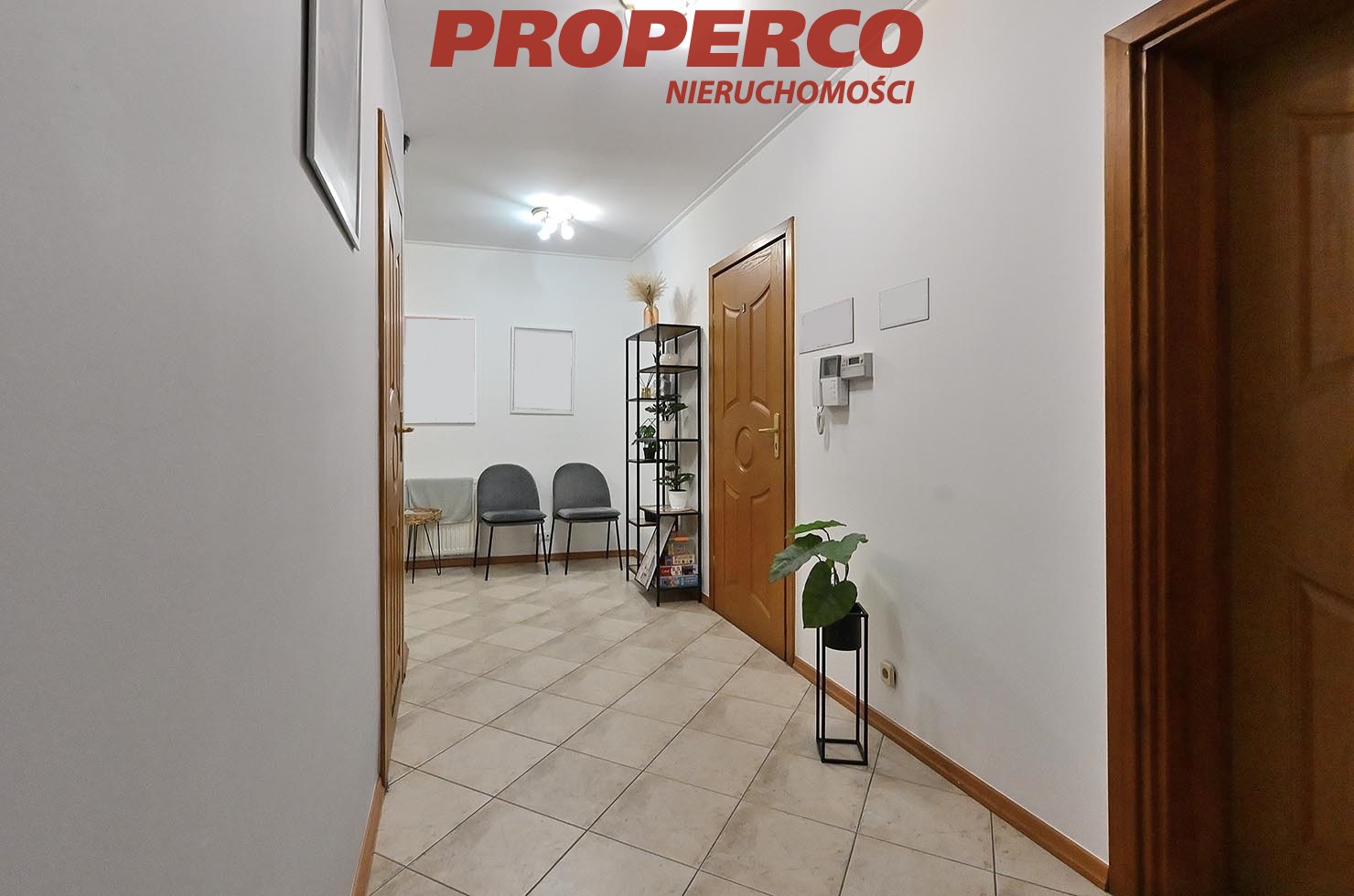 Do wynajęcia lokal biurowo-usługowy o powierzchni ok. 40 m2, usytuowany na pierwszym piętrze w budynku przy ul. Jesionowej. Pokój w kształcie prostokąta o wymiarach ok. 7 x 5,6 m, widny, duże okna, klimatyzowany, z dwoma balkonami. Na podłodze panele. Na piętrze obszerny wspólny hall-poczekalnia, łazienka (3 m2), pomieszczenie socjalne (2 m2) i pomieszczenie gospodarcze (6 m2). Budynek z 1998r. W lokalu instalacja światłowodowa. Przed budynkiem duży parking dla klientów. Na elewacji możliwość umieszczenia reklamy. Dostęp całodobowy.