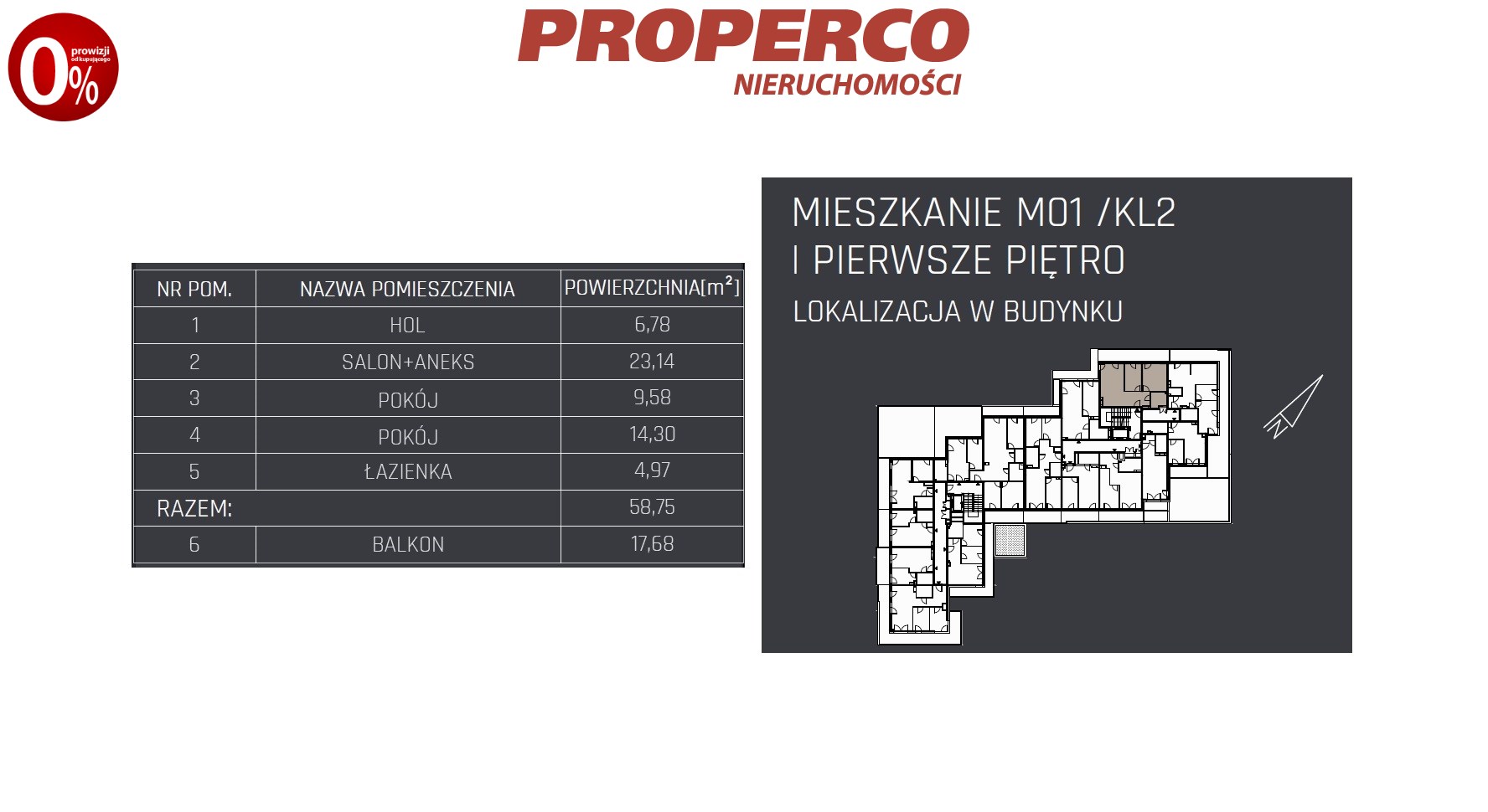 – dużego balkonu o pow. 17,68 m2.