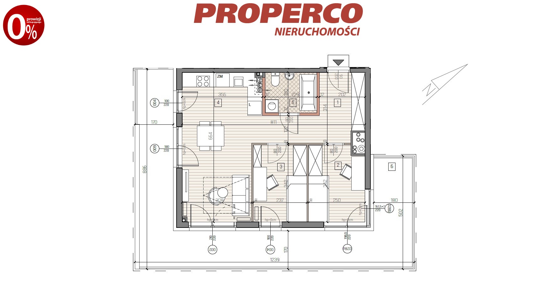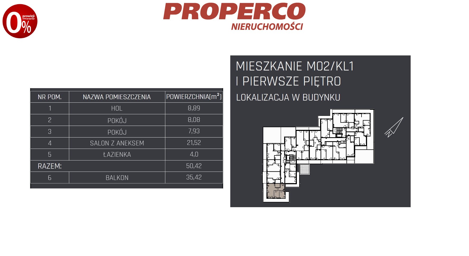 For sale a 3-room apartment with an area of 50.42 m2, located on the 1st floor in a modern development in Jędrzejów. The unit is in developer standard.