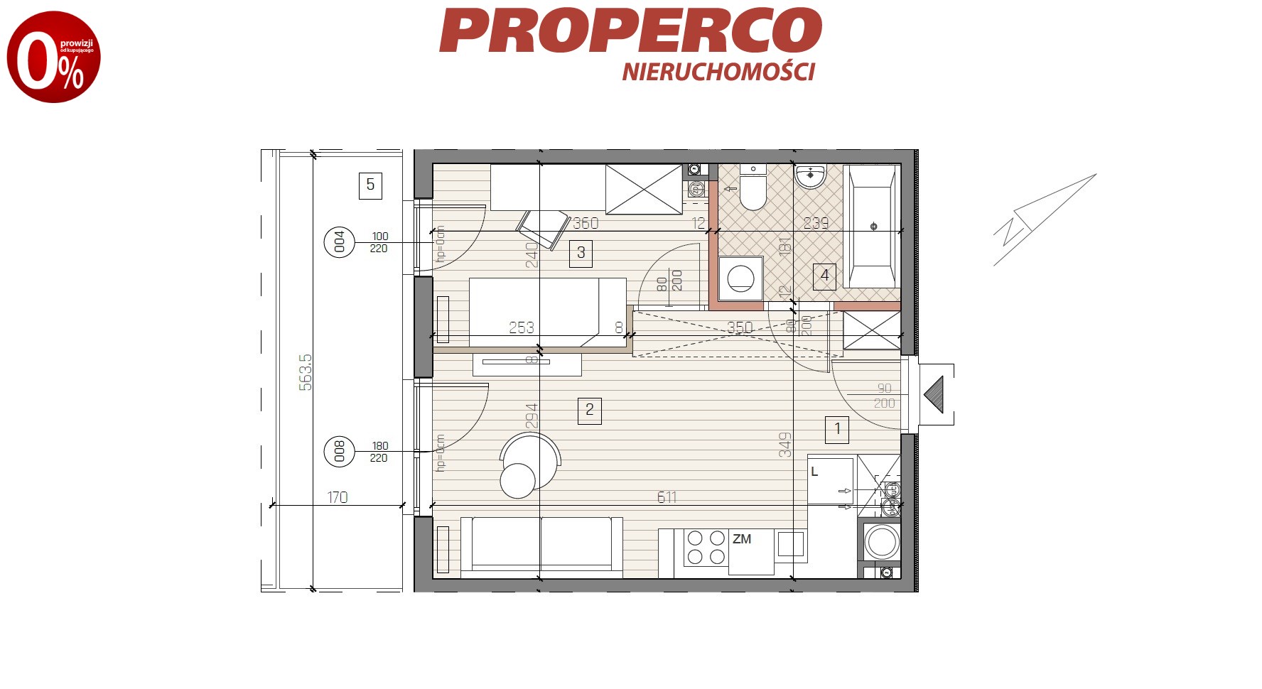 For sale a 2-room apartment with an area of 31.14 m², located on the 1st floor in a modern development in Jędrzejów. The unit is in developer standard.
