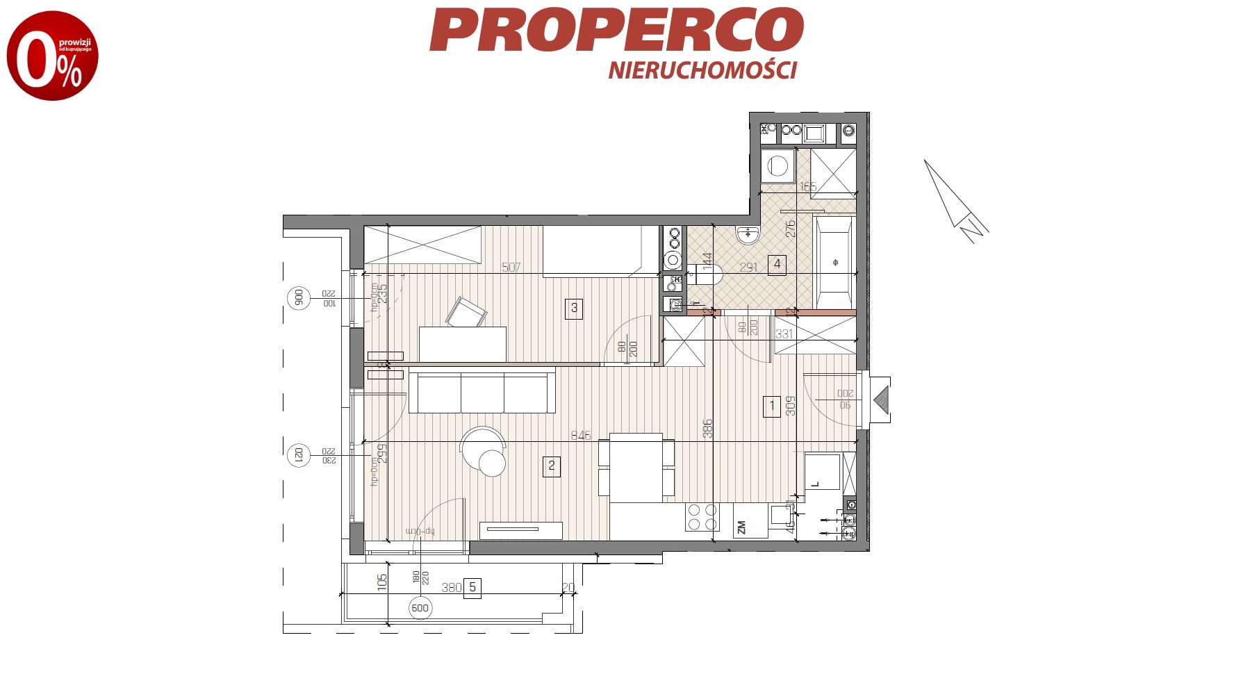 For sale: 2-room apartment with an area of 45.63 m², located on the 1st floor in a modern development in Jędrzejów. The unit is in developer standard.