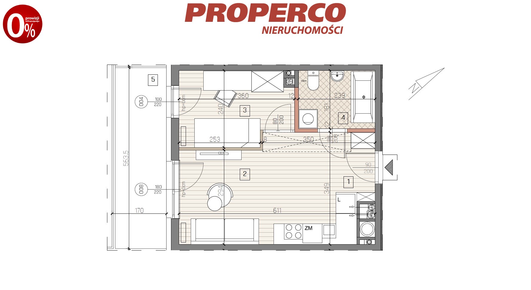 For sale: a 2-room apartment with an area of 30.73 m2, located on the 3rd floor in a modern development in Jędrzejów. The apartment is in developer standard.