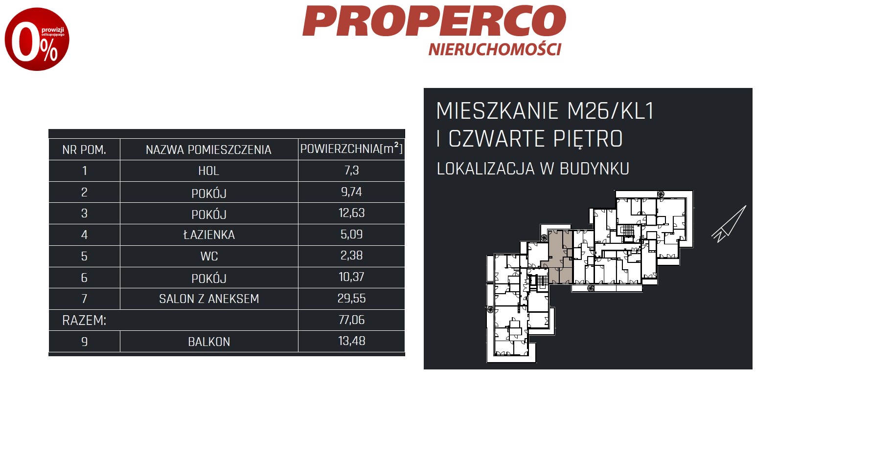 For sale: a 4-room apartment with an area of 77.06 m2, located on the 3rd floor in a modern development in Jędrzejów. The apartment is in developer standard.