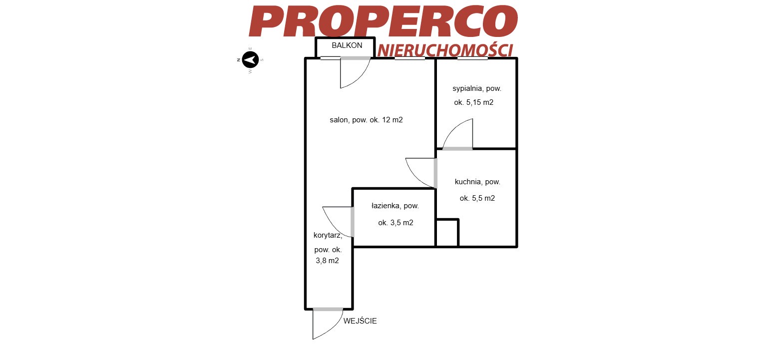 - przedpokój o pow. ok. 3,8 m2.