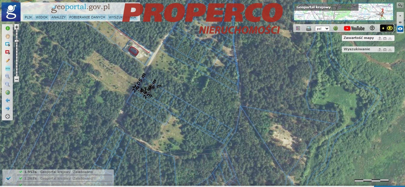Do działki prowadzi geodezyjnie wydzielona droga, prąd jest po drugiej stronie drogi.