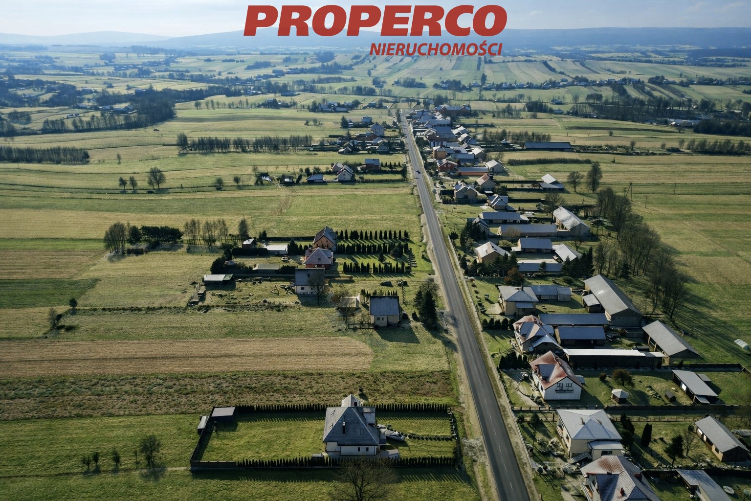 The plot is approximately rectangular in shape, with approximate dimensions of 16 x 270 x 18 x 269 m. Frontage width approx. 16 m. The plot is located in the first line of development in relation to an asphalt provincial road.