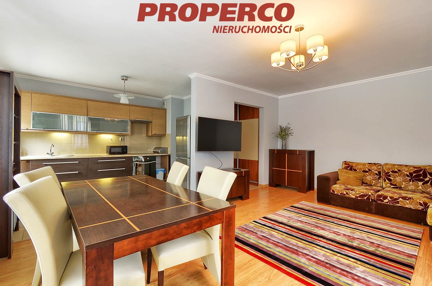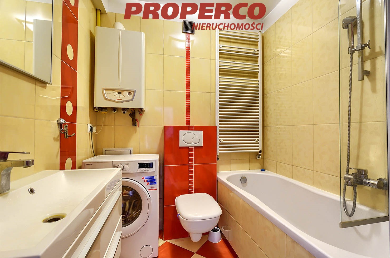 The apartment is bright and well-lit, with PVC windows and laminate flooring in the living areas; gres tiles in the kitchen and bathroom. Heating and hot water are provided by a gas combi boiler. The unit comes with a balcony.