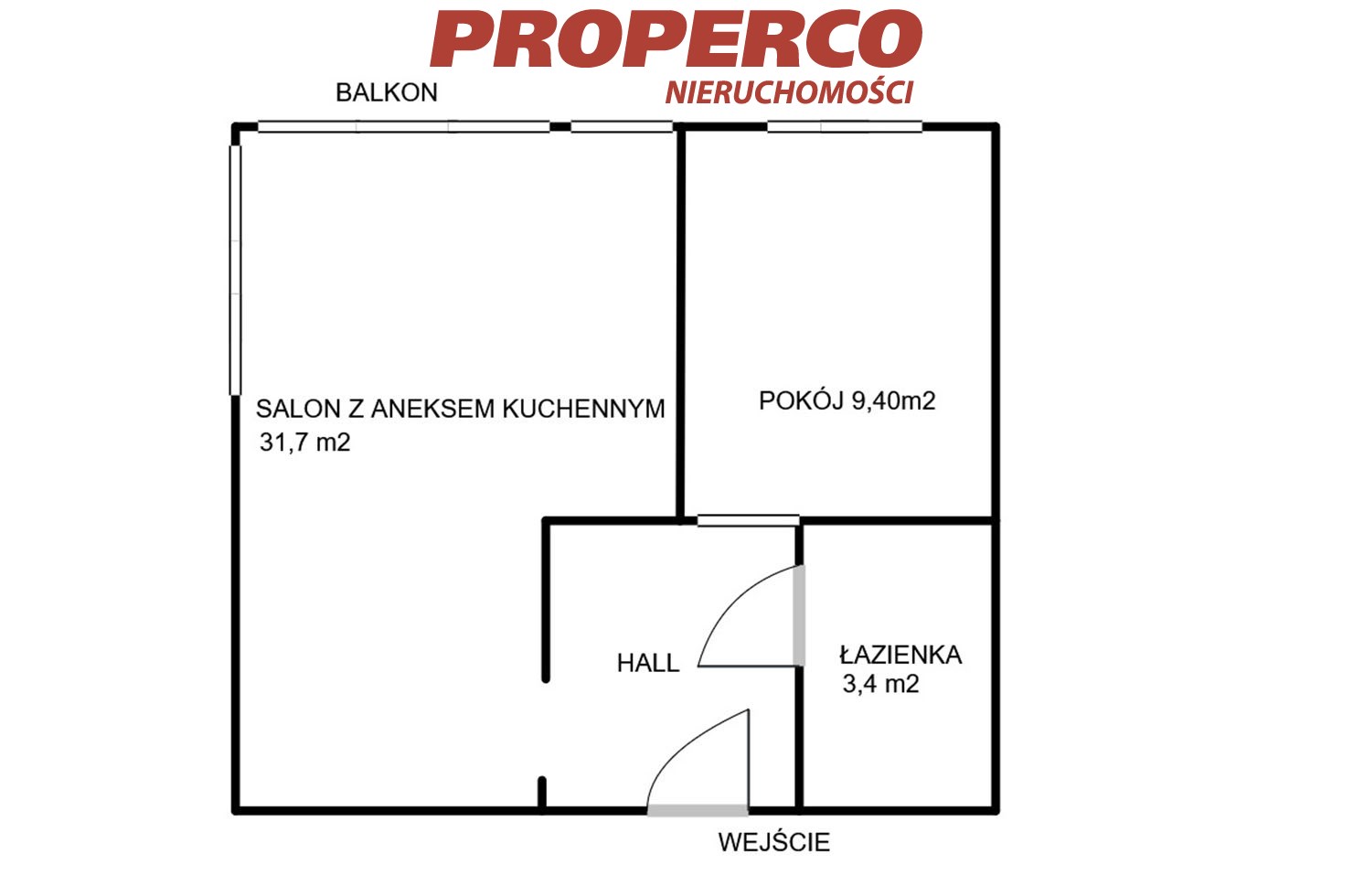 Spacious living room with a kitchenette (approx. 31.70 m²) and access to a balcony
