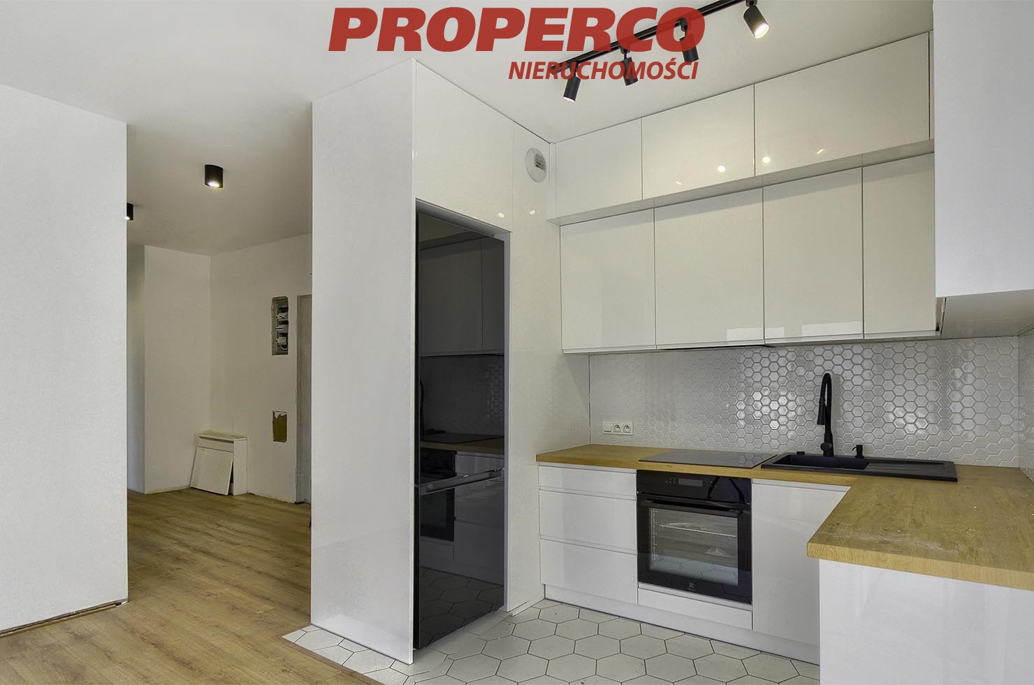 The apartment has an area of 59.45 m² and is aesthetically finished, with a modern kitchen fitted with high-quality household appliances from Electrolux and Samsung (induction hob, dishwasher, oven, fridge-freezer). All appliances are new, unused, and under warranty.