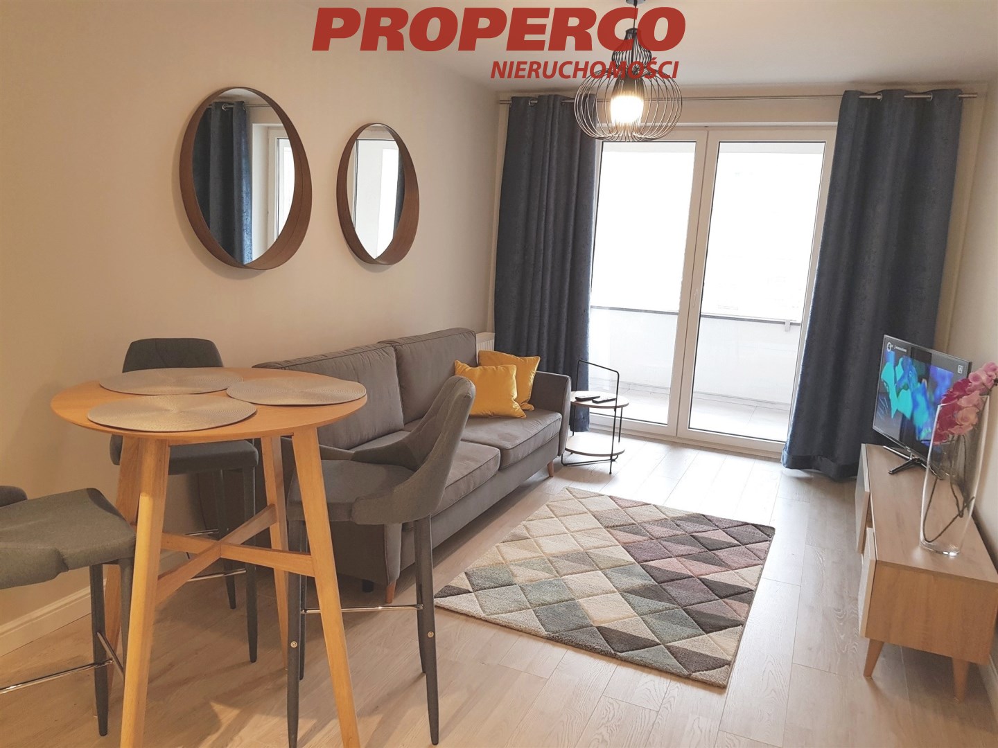 For rent: an apartment with an area of 44.64 m² located on the 2nd floor of a building from 2018, situated in the very center of Kielce at Panoramiczna Street.
