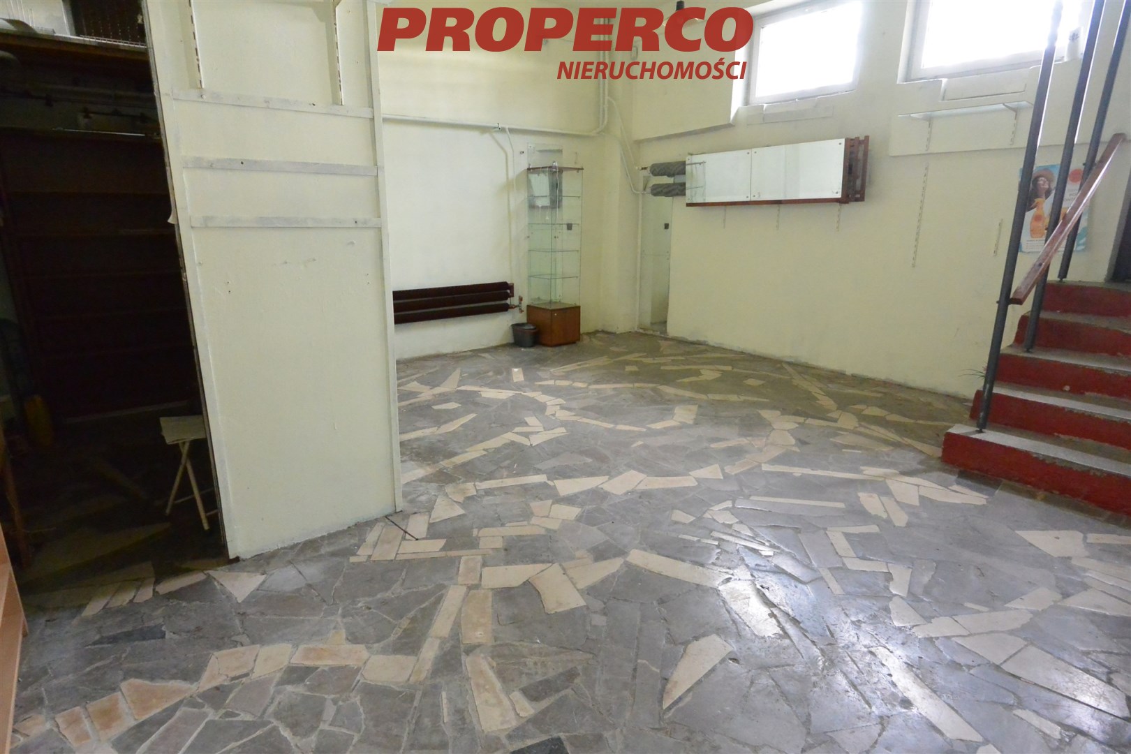 For rent: a commercial premises with an area of 35.4 m², located in the semi-basement of a one-storey commercial and service building in the Podkarczówka district.