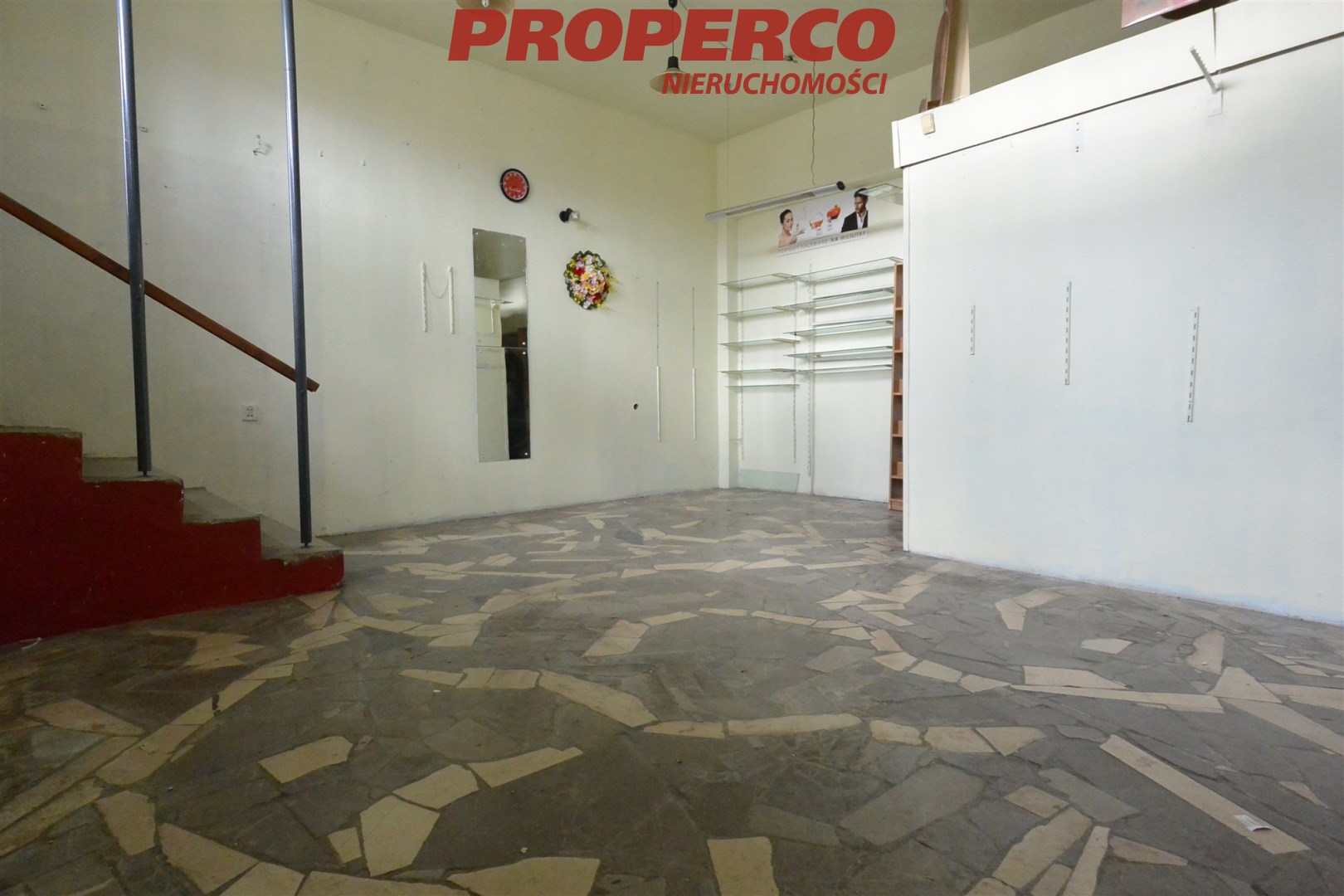The premises consist of a main room and a social/back room and are single-aspect. The entrance to the premises is directly from the street. The property is in a condition allowing for individual arrangement and is suitable for any commercial or service activity. The building is located in a high-traffic area, surrounded by numerous shops, service points, and residential buildings. A public parking area is available in front of the building. It is possible to place advertising in the display windows of the premises.