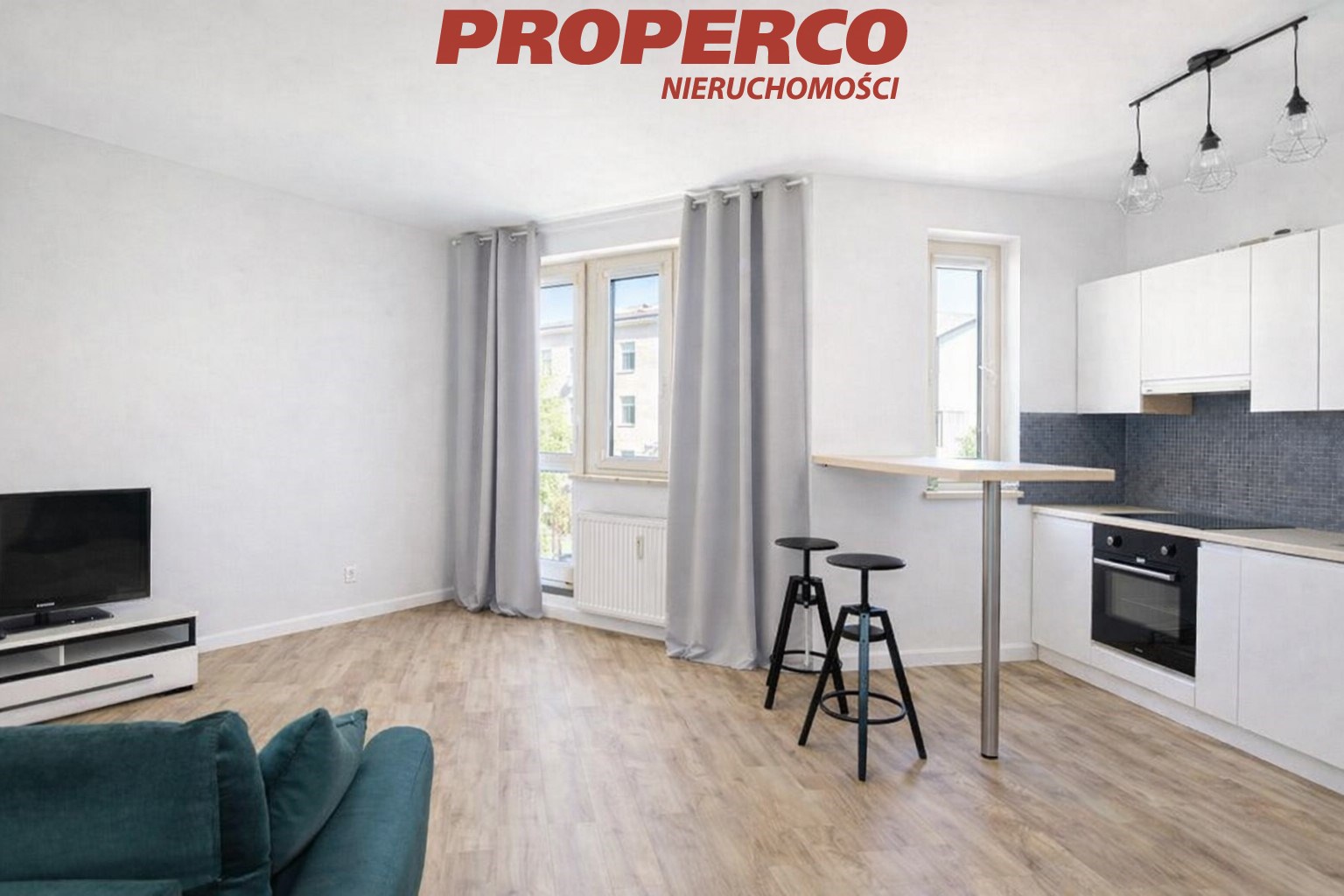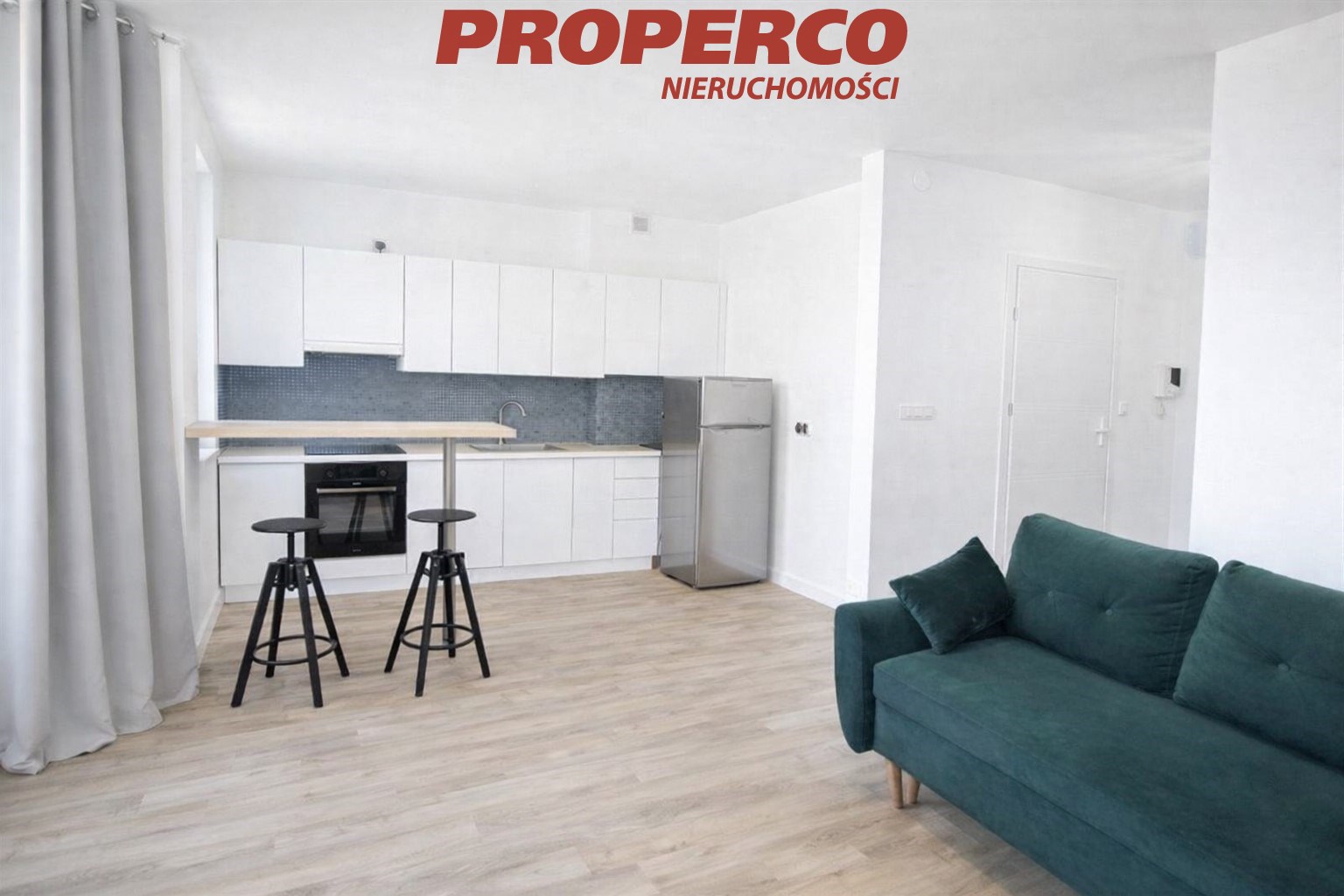 The apartment is fully furnished and equipped with household appliances (induction hob, oven, dishwasher, washing machine). The unit is located on the 13th floor of a 14-storey building from 2004. The apartment consists of: a living room with a kitchenette and access to the balcony, a bathroom with WC, and a hallway.