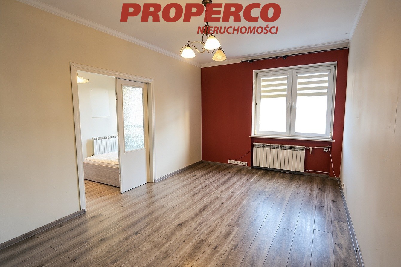 For sale: a bright, dual-aspect apartment with an area of 50 m², located on the 3rd floor of a 4-storey tenement building from the 1950s, in the very center of Kielce.