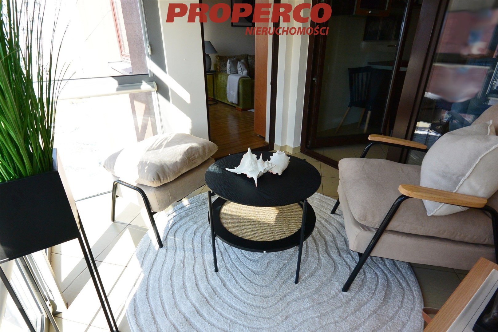 Z pokoju i kuchni wyjście na zadaszony, przeszklony i nowocześnie umeblowany taras. W cenie czynszu najmu Internet i telewizja kablowa.