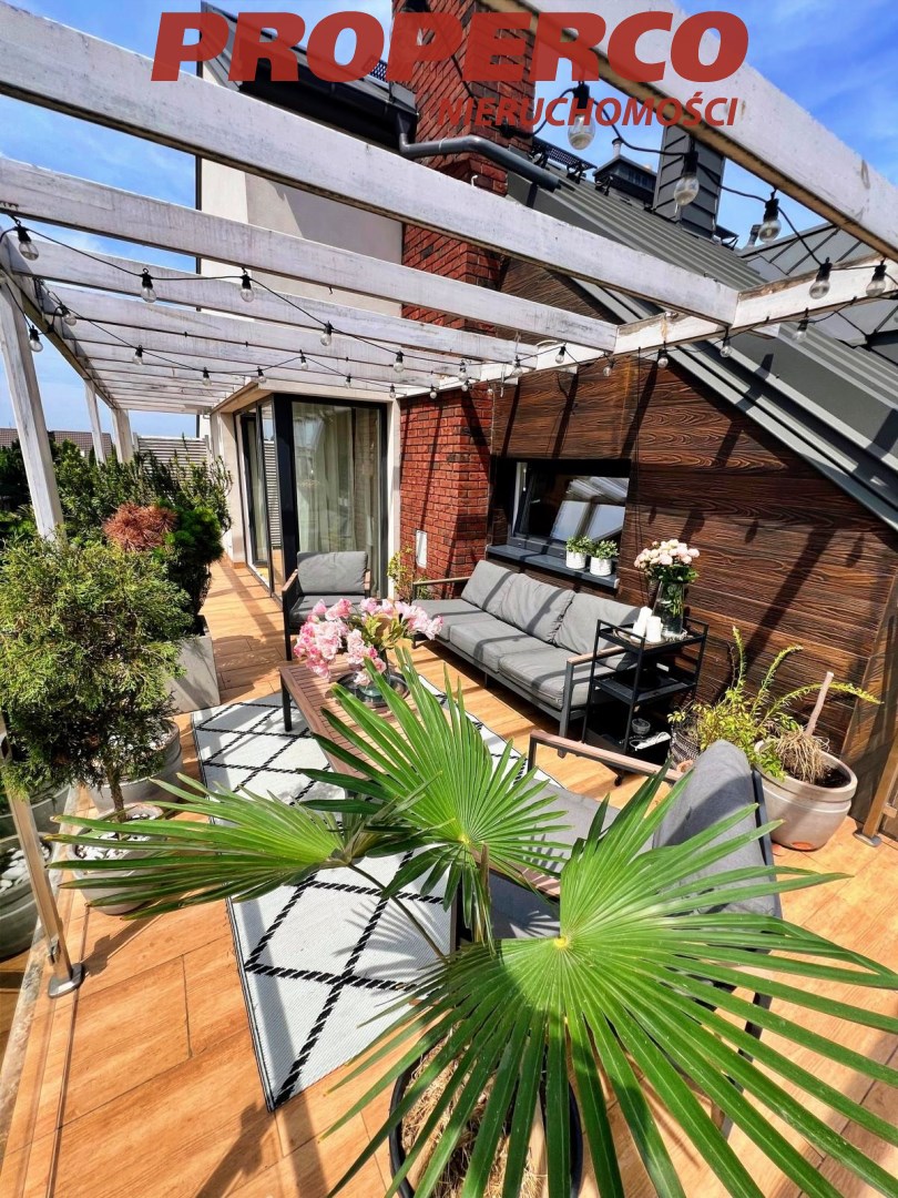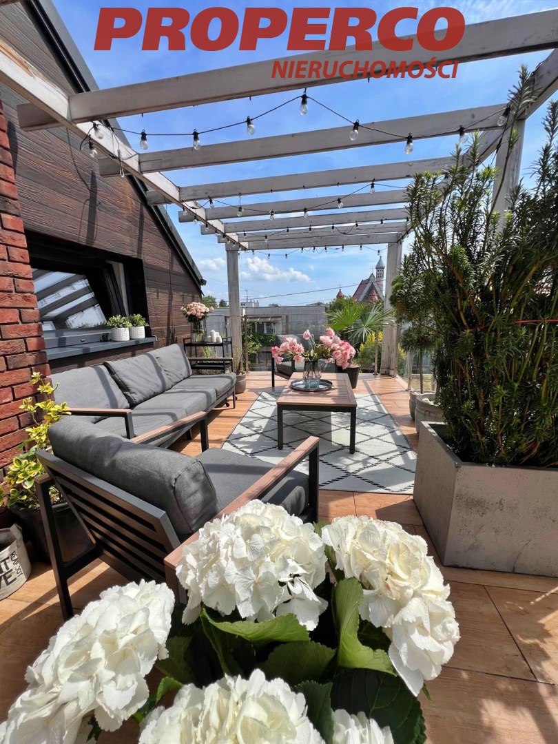 Na tarasie zamontowane deski, możliwe jest wstawienie jacuzzi na tarasie, ponieważ na tarasie został wzmocniony strop (właściciele mieli zamontowane jacuzzi w tym miejscu).